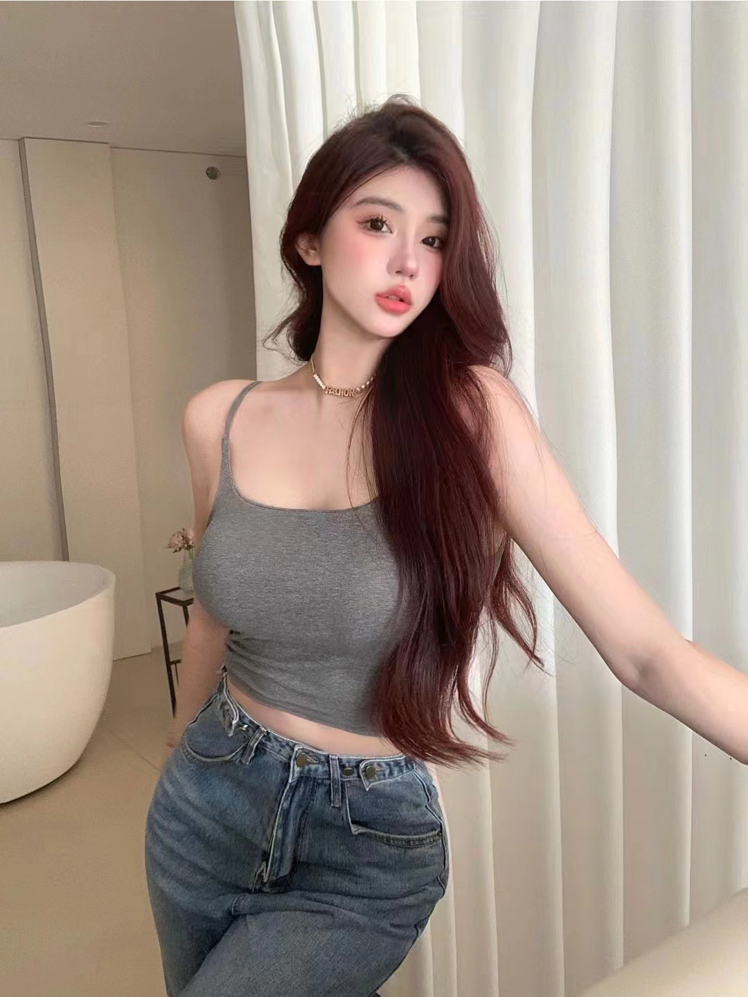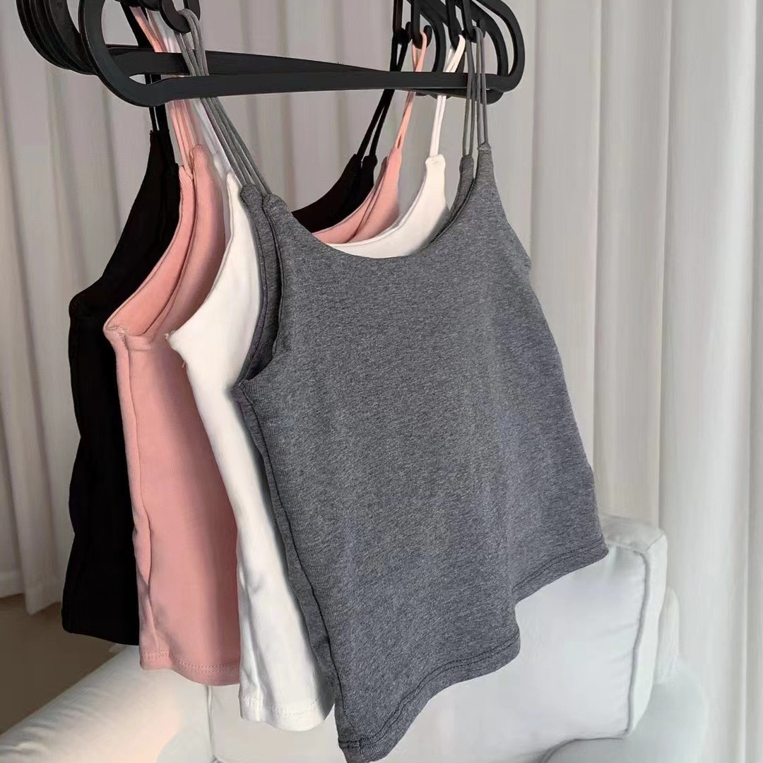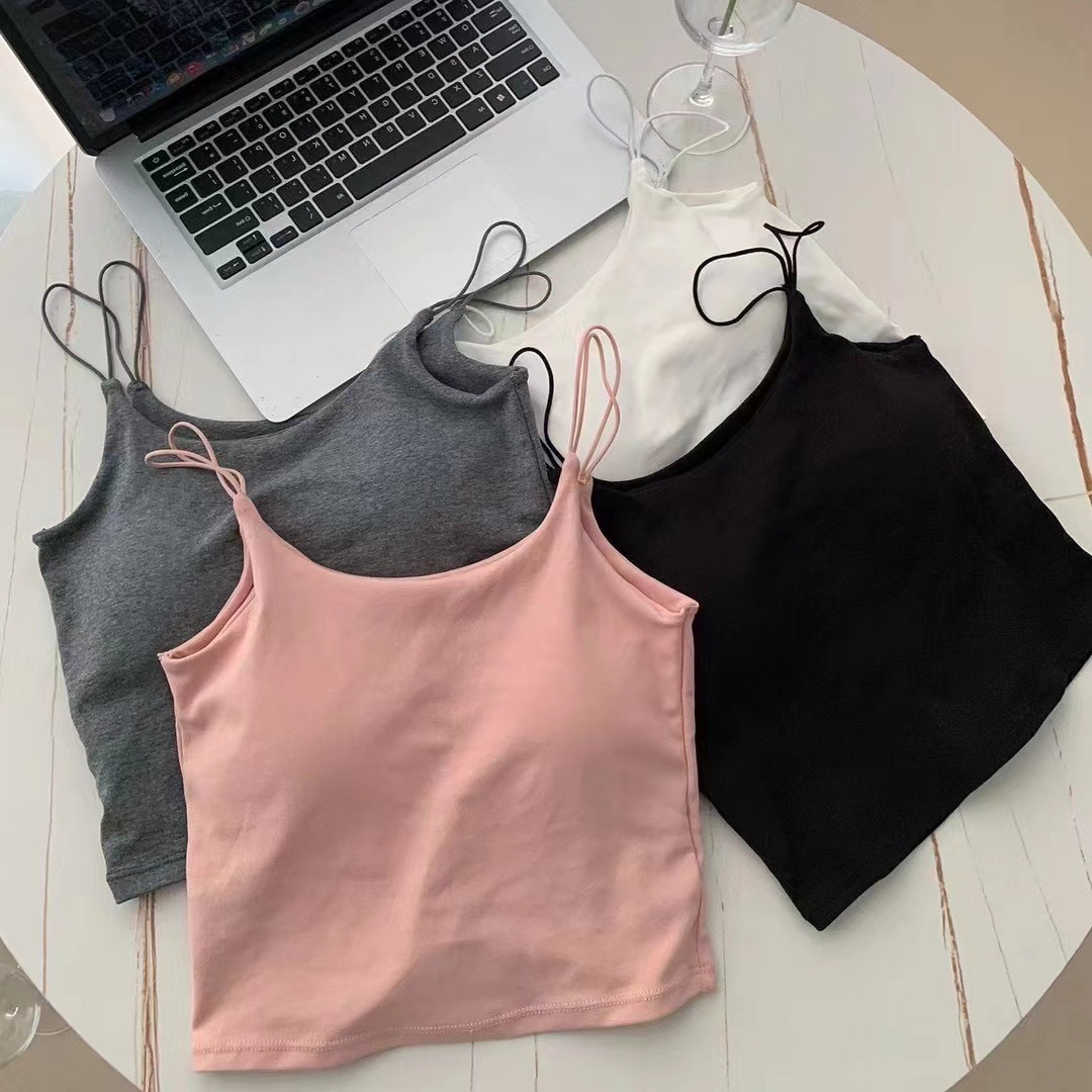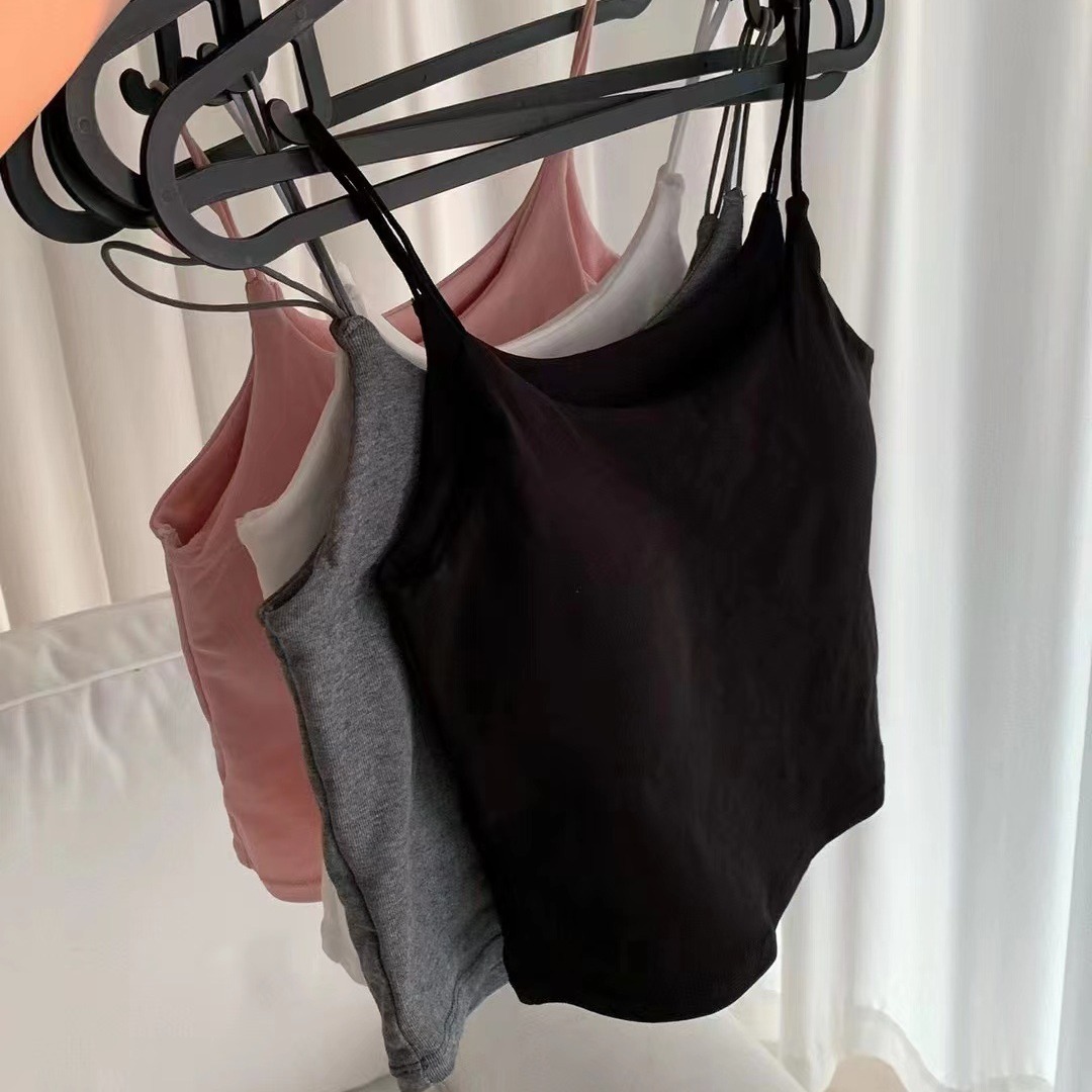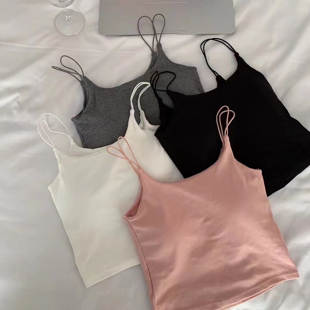 여성 면화 작은 캐미솔 가슴 패드 여름 뜨거운 소녀 내부와 외부 착용 짧은베이스 흰색 달콤하고 매운 탑