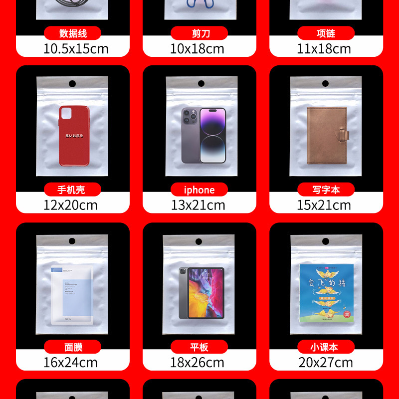 진주빛 지퍼백, 플라스틱 지퍼백, 휴대폰 케이스 포장백, 데이터 케이블 액세서리 포장백, 다양한 크기스토어 가기