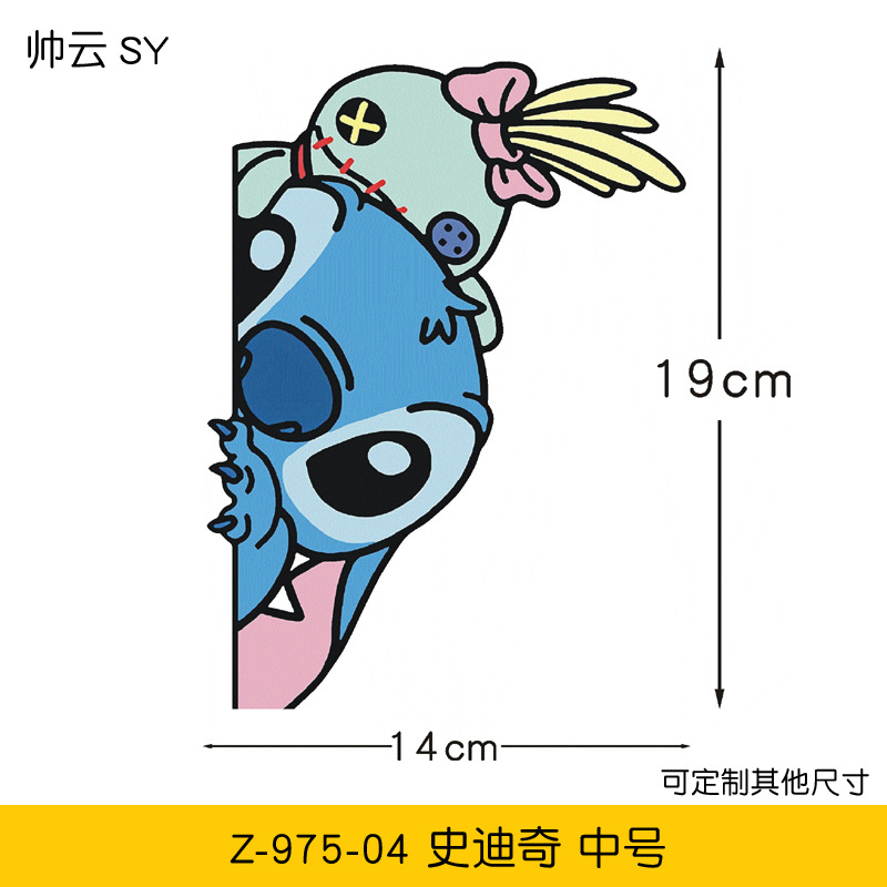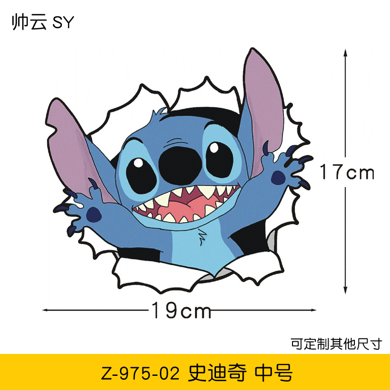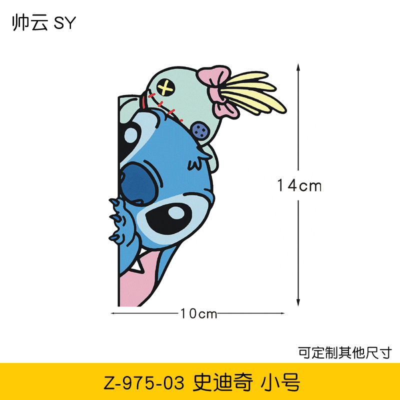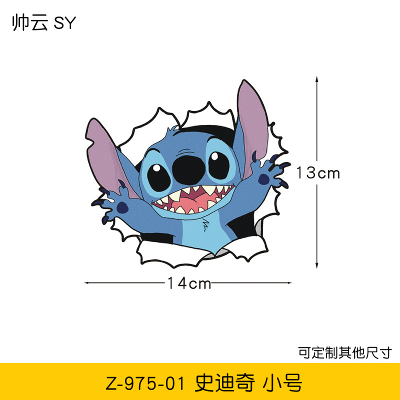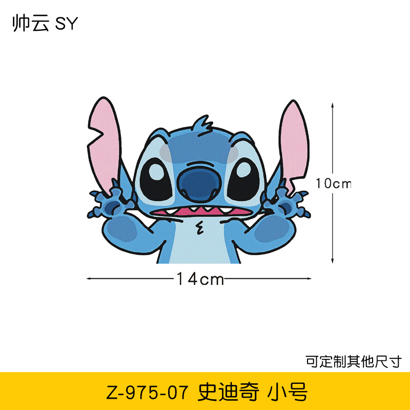 만화 스타 아기 스티치 커버 스크래치 전기 오토바이 자동차 스티커 애니메이션 자동차 스티커스토어 가기