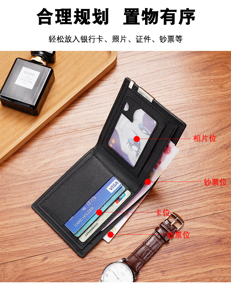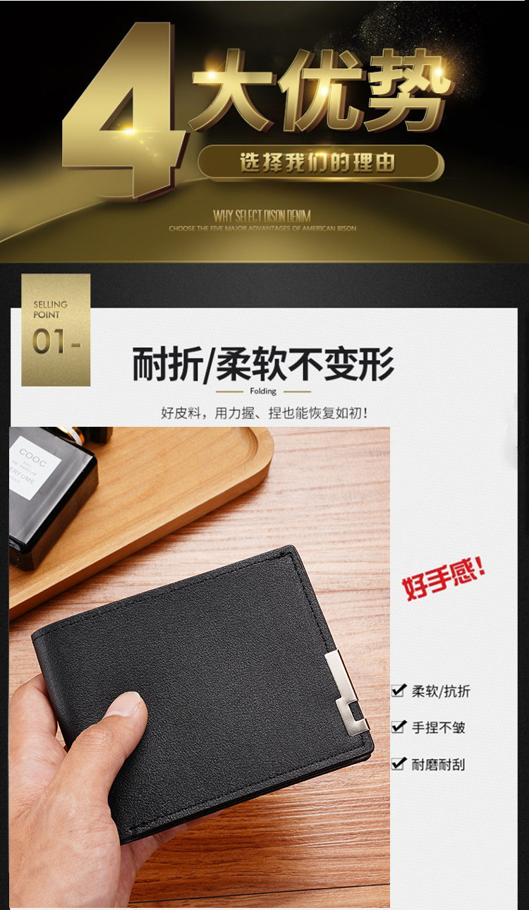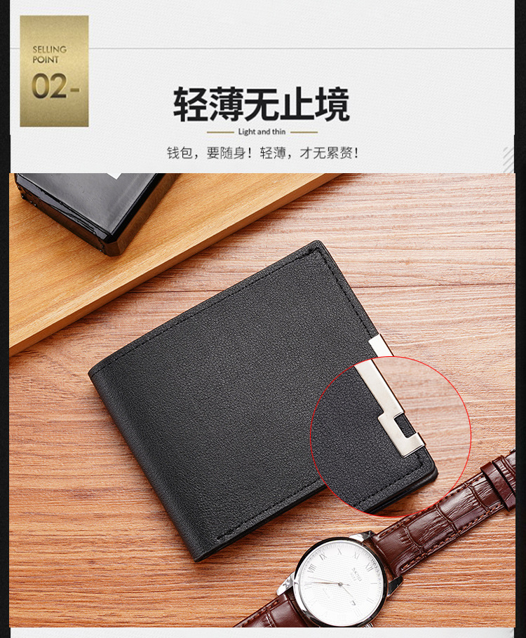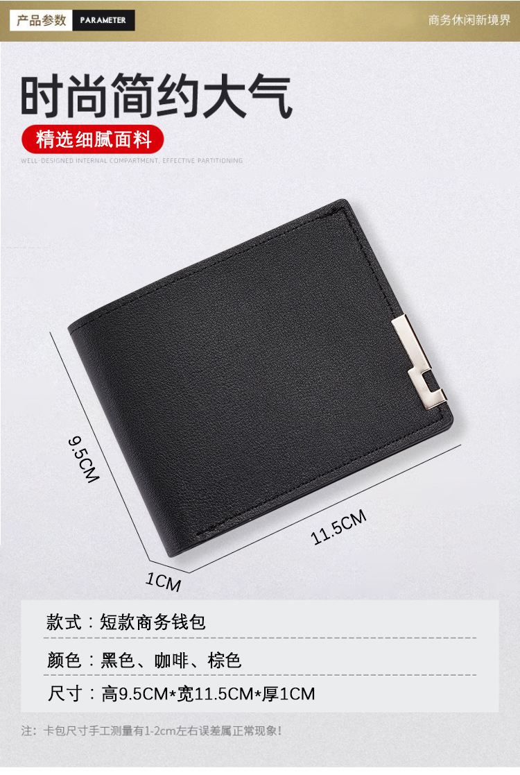 JIANGBAO男士短款钱包韩版铁边青年男式横款多卡位钱夹潮流卡包