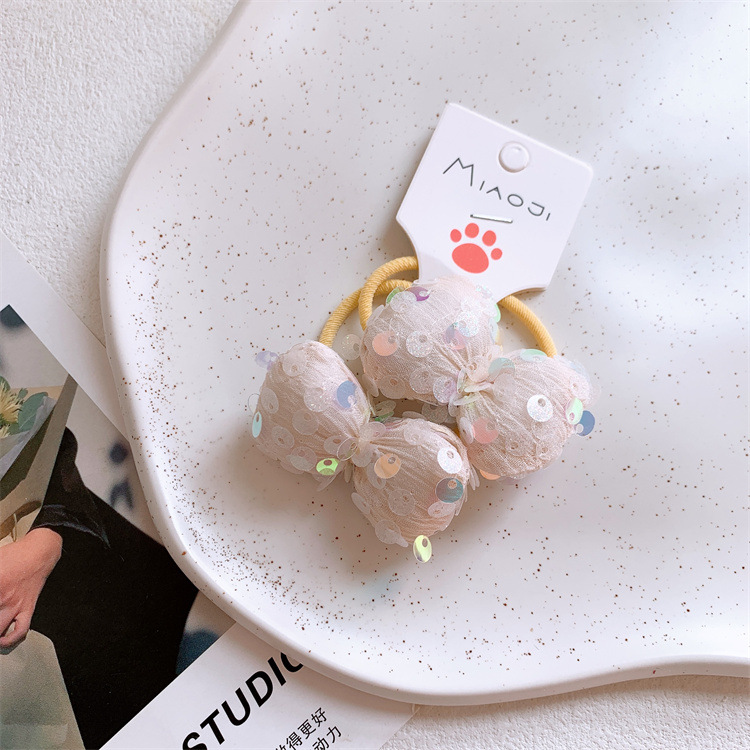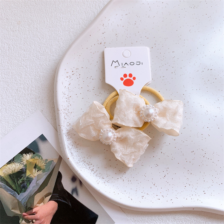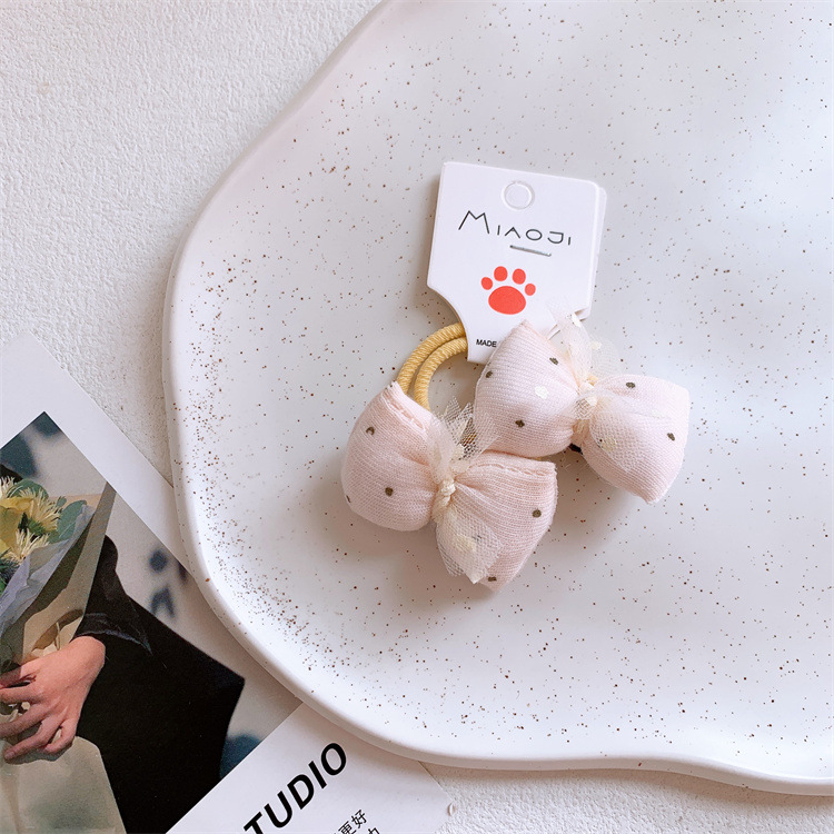 어린 소녀 머리 넥타이 고무 밴드 헤어 로프 쌍 헤어 로프 헤어 액세서리 어린이 새로운 베이지 색 패브릭 활 헤어 밴드스토어 가기