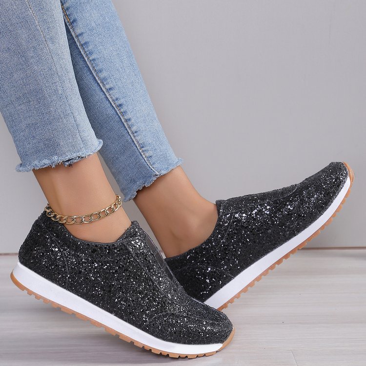 국경 간 플러스 사이즈 스포츠 여성을위한 싱글 레이어 신발 2024 유럽과 미국의 인기있는 스팽글 운동화 캐주얼 신발 싱글 레이어 신발스토어 가기
