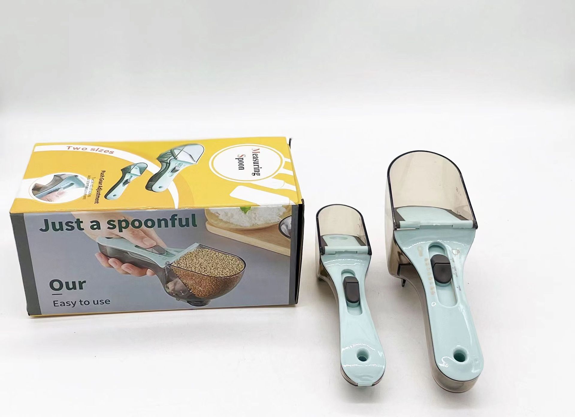 측정 스푼 2 조각 세트 조정 가능한 측정 스푼 주방 도구 플라스틱 스케일 측정 스푼 조정 가능한 측정 스푼 세트스토어 가기