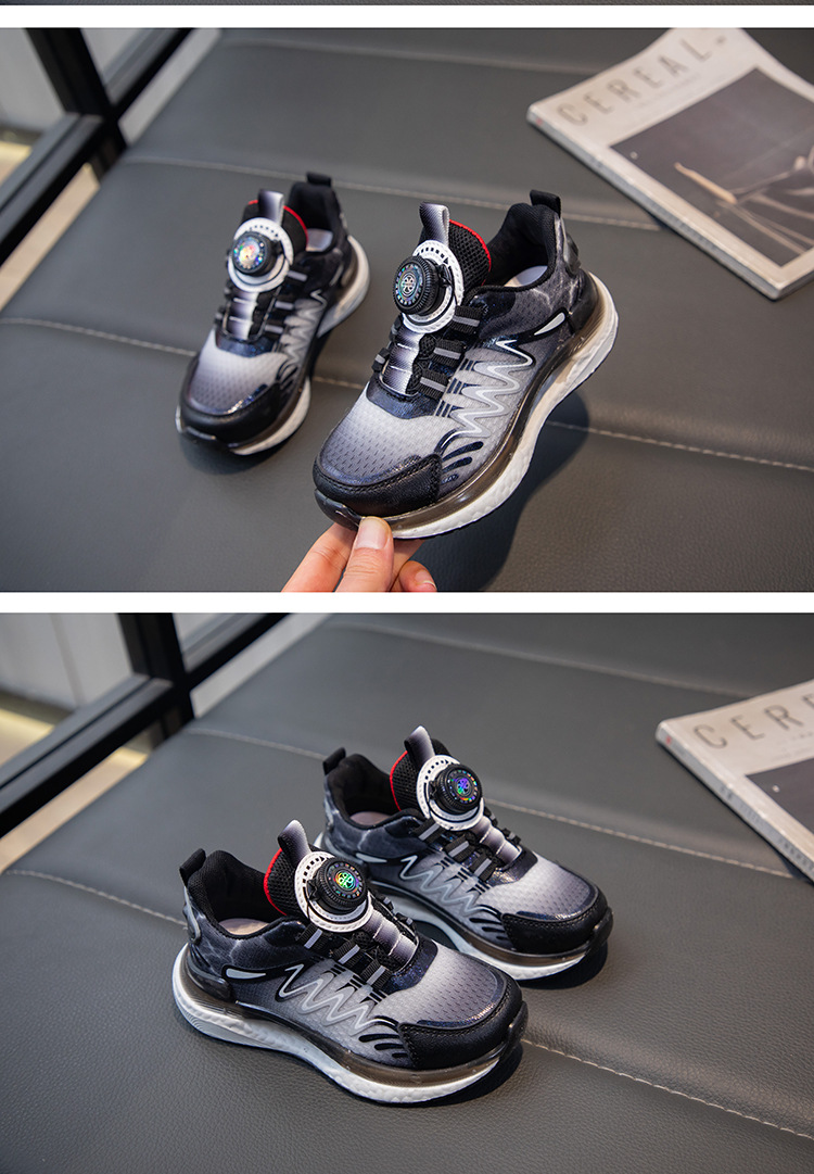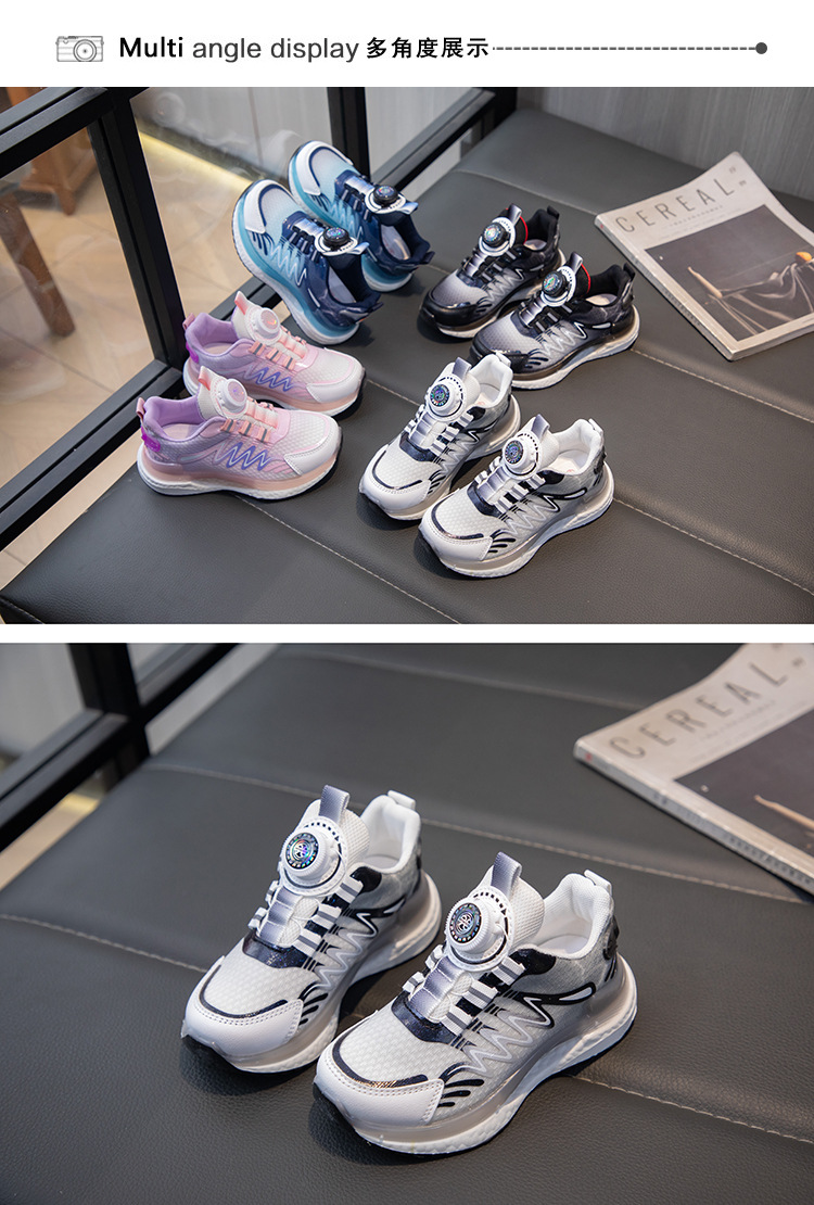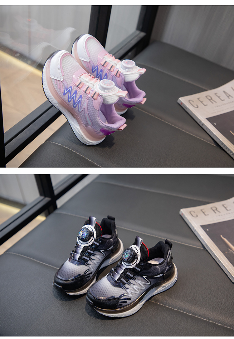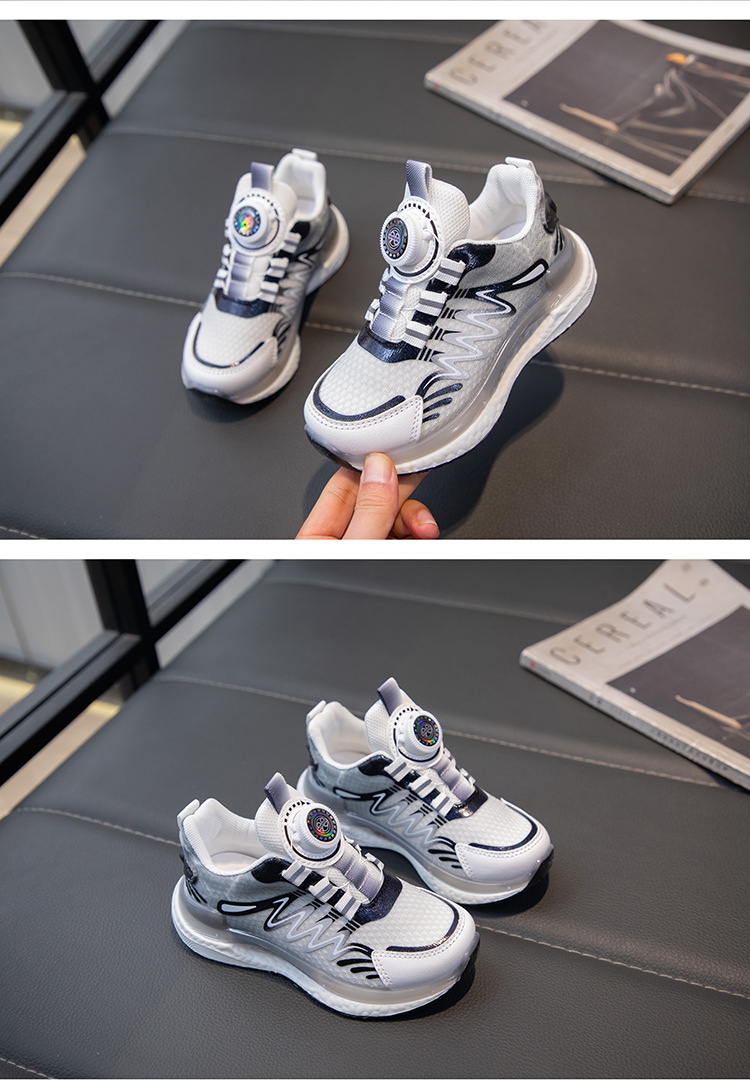 어린이 회전 버클 신발 운동화 2024 인기있는 봄과 여름 메쉬 통기성 미끄럼 방지 캐주얼 신발 소년 소녀