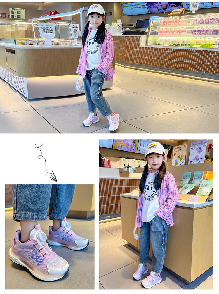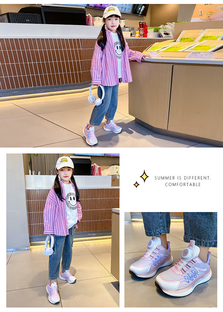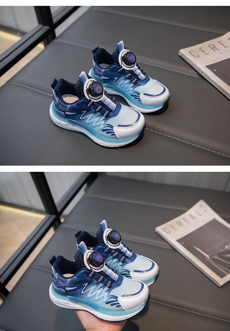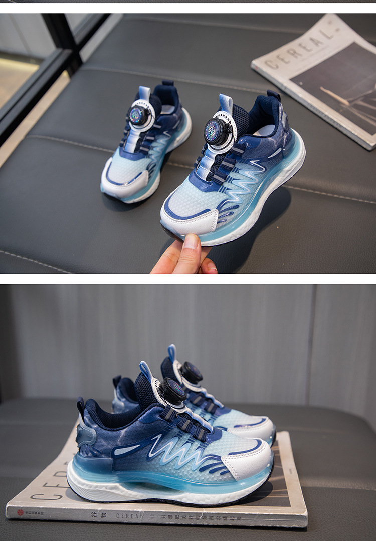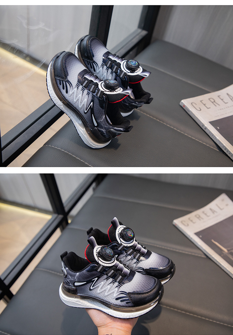 어린이 회전 버클 신발 운동화 2024 인기있는 봄과 여름 메쉬 통기성 미끄럼 방지 캐주얼 신발 소년 소녀