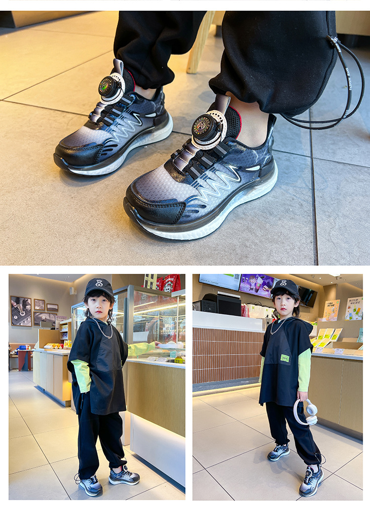 어린이 회전 버클 신발 운동화 2024 인기있는 봄과 여름 메쉬 통기성 미끄럼 방지 캐주얼 신발 소년 소녀스토어 가기