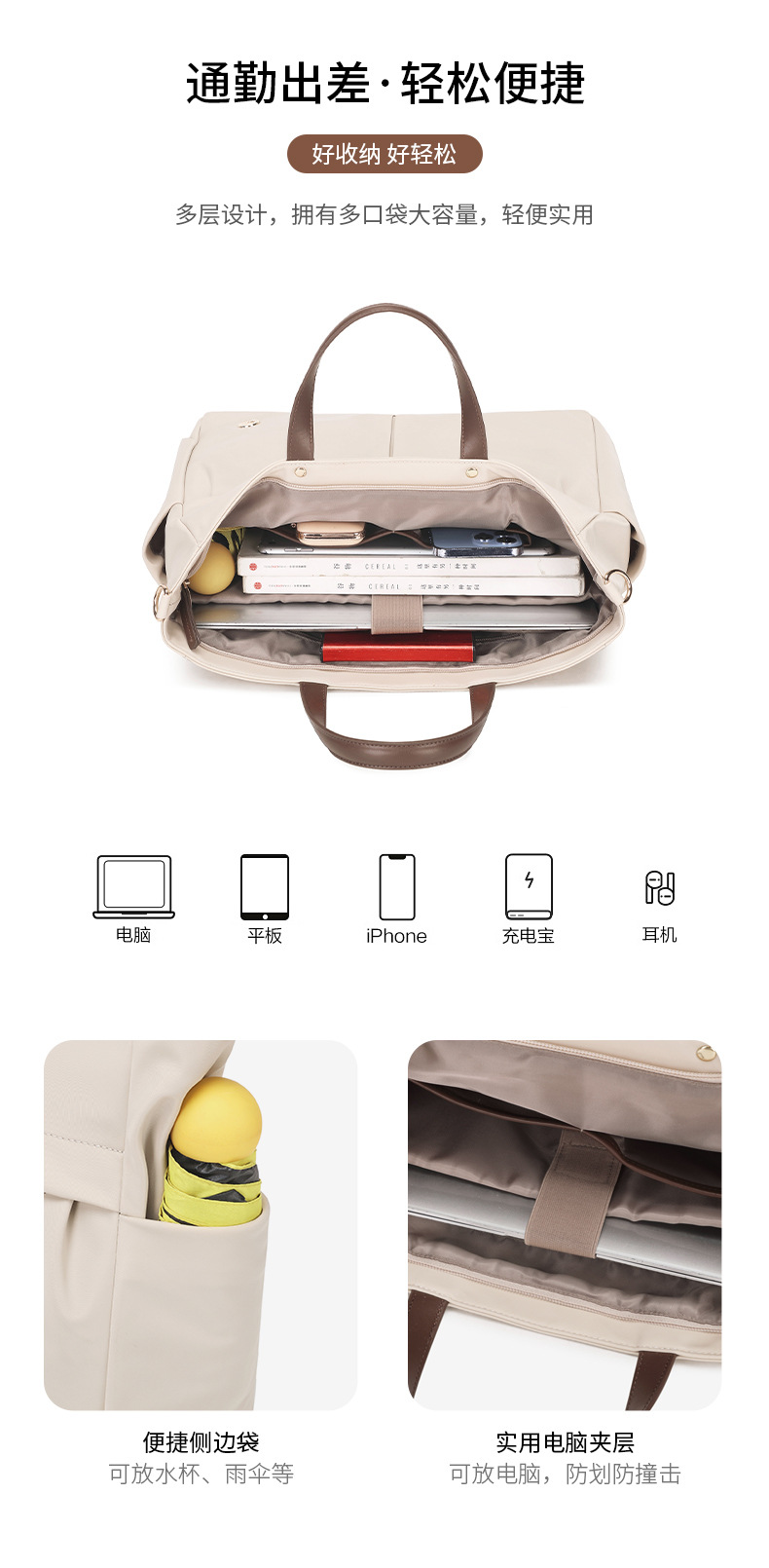 2024 새로운 대용량 통근 비즈니스 서류 가방 휴대용 노트북 가방 어깨 크로스 바디 이중 사용 가방스토어 가기