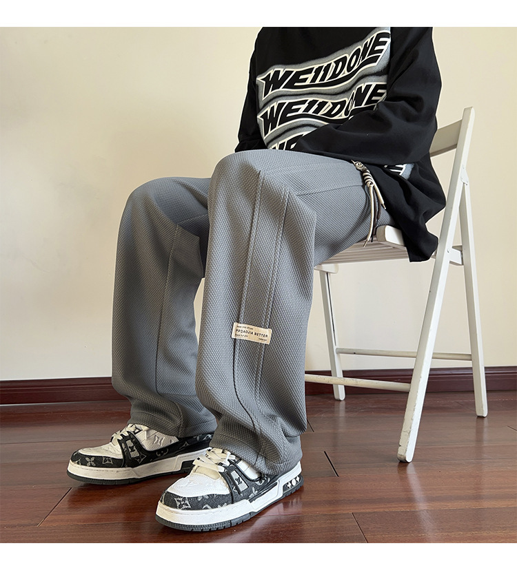 일본식 오버 사이즈 화이트 바지 남성 봄 미국 복고풍 느슨한 와이드 레그 팬츠 걸레 드레이프 캐주얼 바지스토어 가기