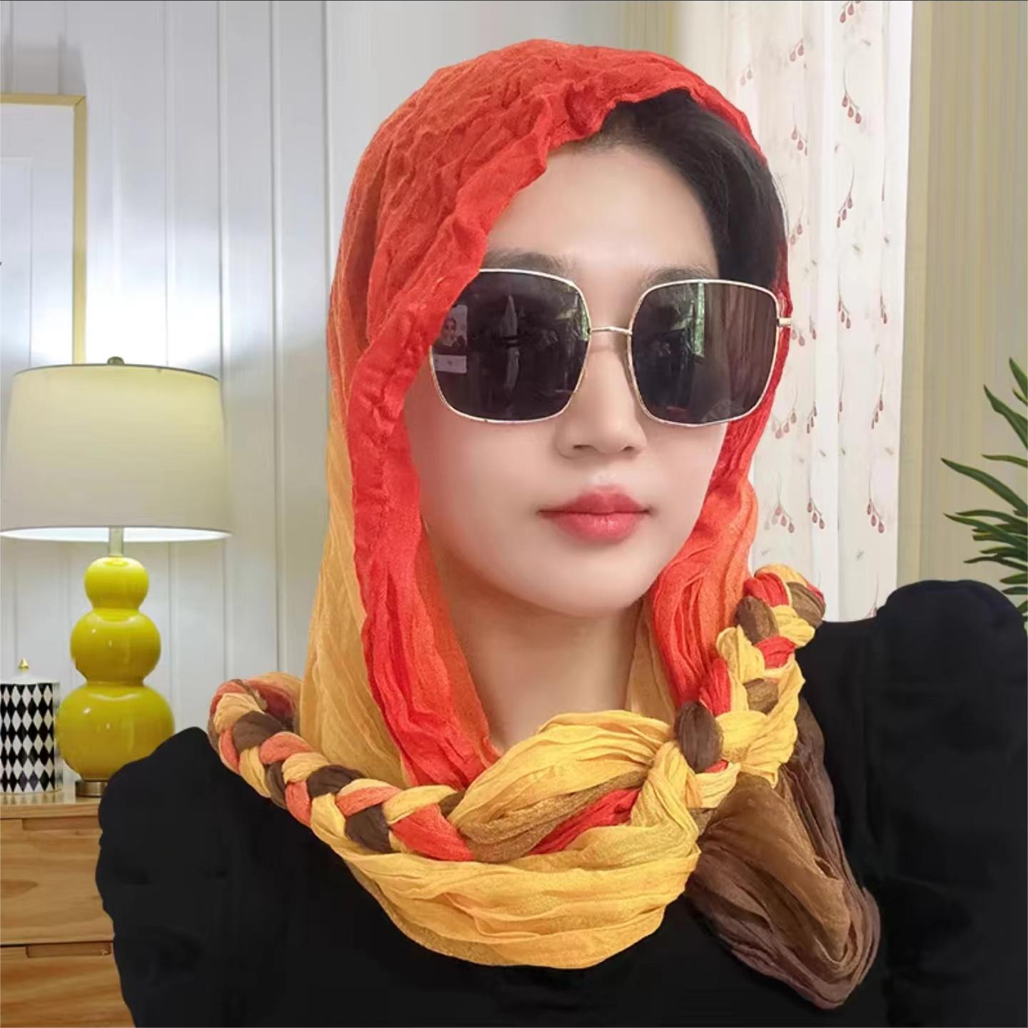 사계절면 및 린넨 브레이드 스카프 태양 보호 다목적 스카프 여행 사진 스카프 패션 올 매치 코코아 같은 스타일스토어 가기