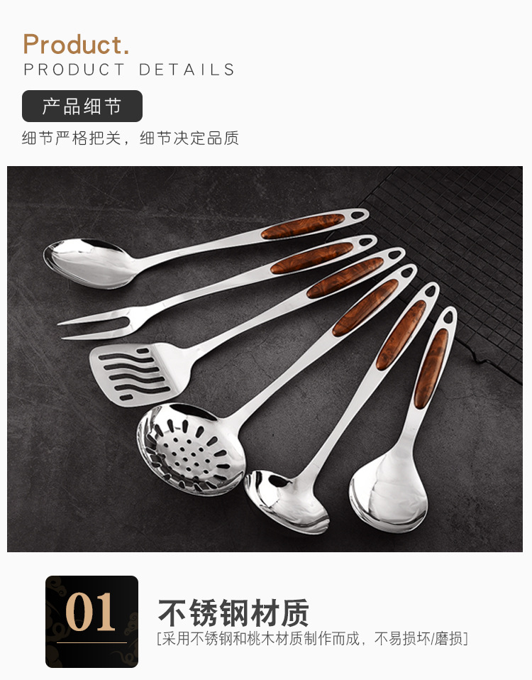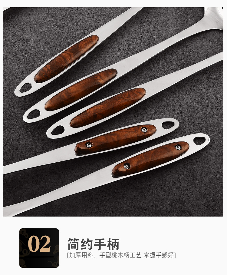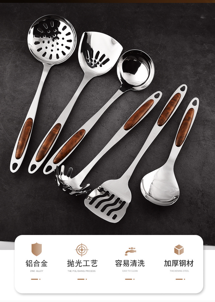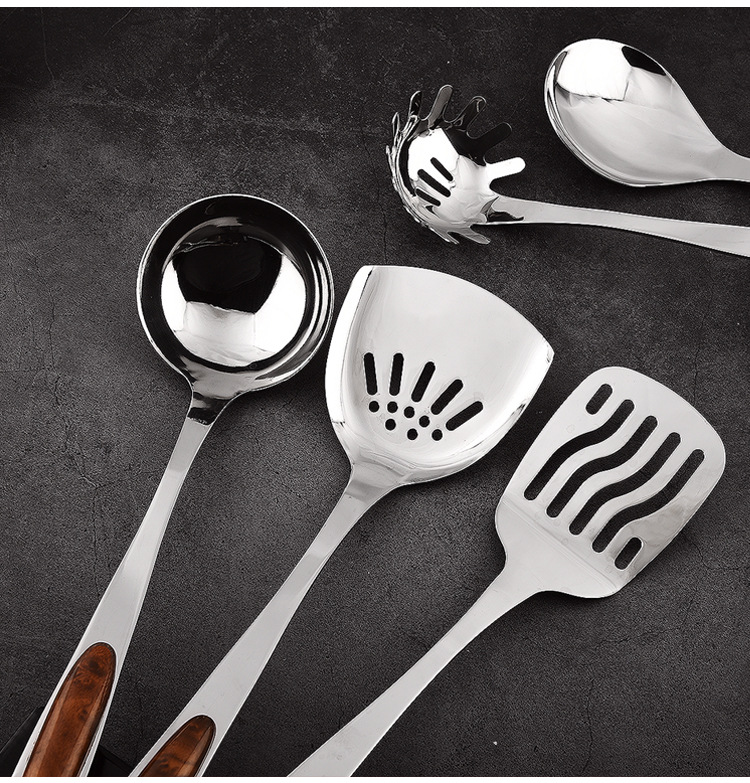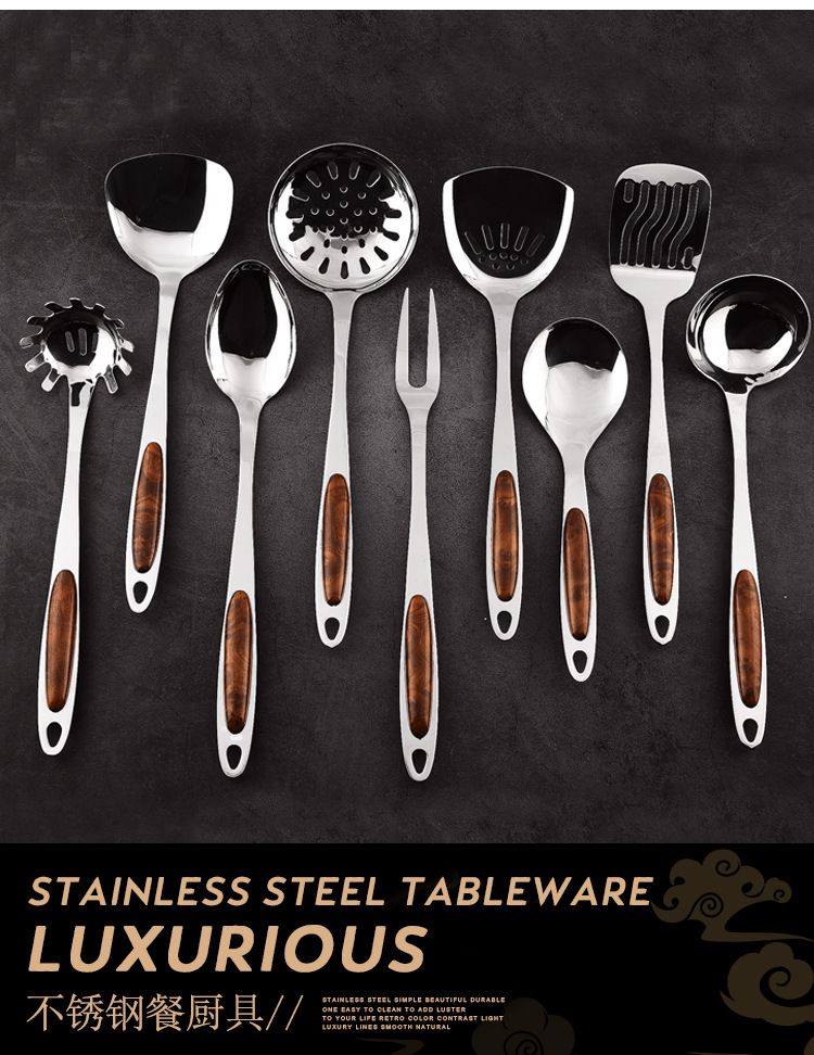 스테인레스 스틸 나무 손잡이 주방 주걱 주걱 수프 숟가락 요리 가정용 주걱 냄비 숟가락 쌀 숟가락 주걱 배수구