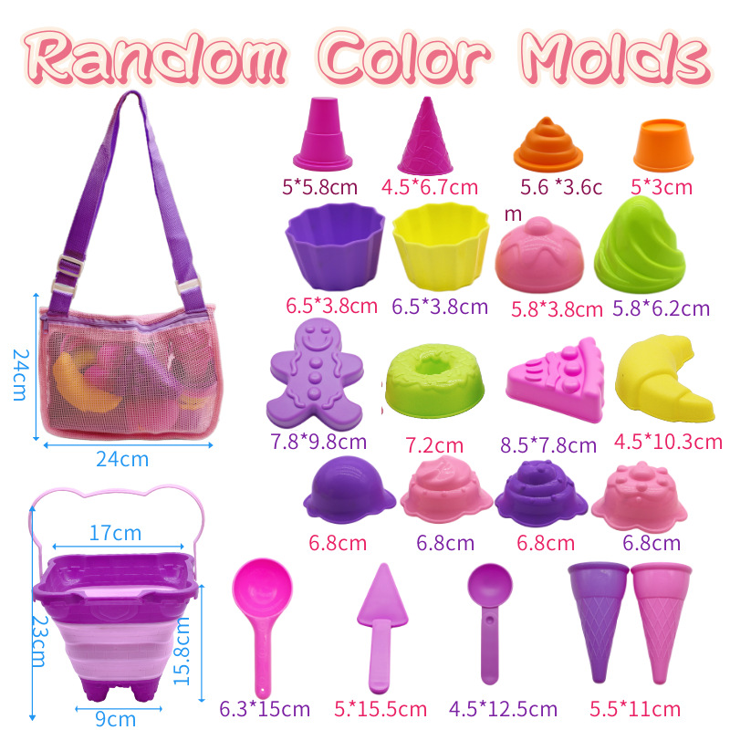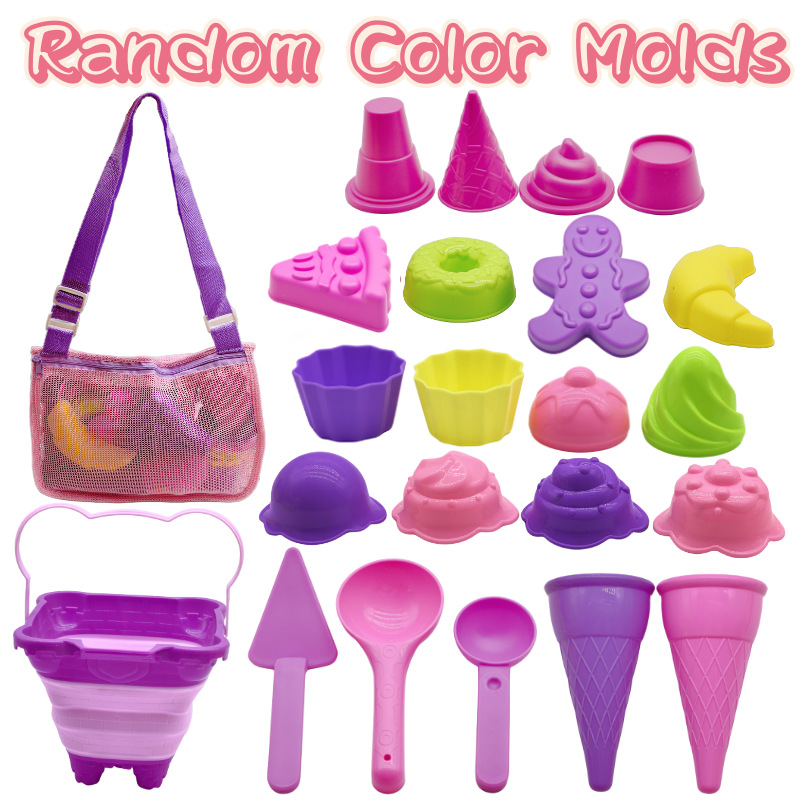 국경 간 어린이 해변 양동이 세트 부모-자식 수영 모래 파는 장난감 소녀 아이스크림 세트 접이식 양동이스토어 가기