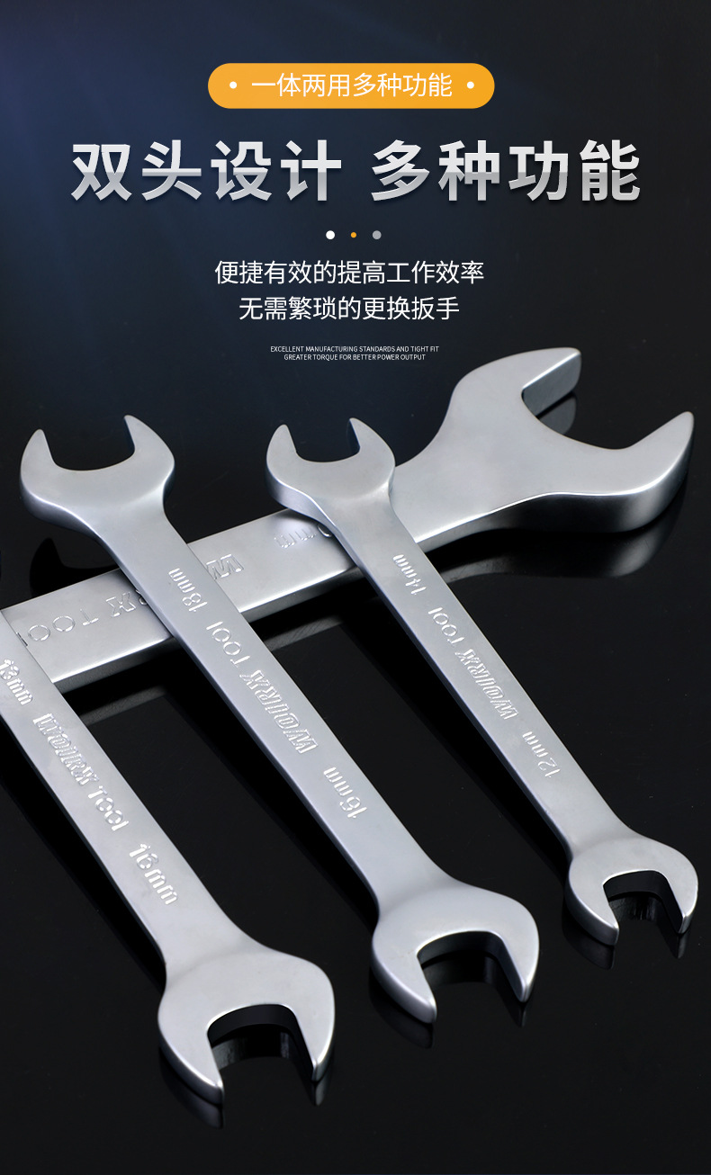 공장 도매 직접 판매 매트 크롬 도금 더블 오픈 엔드 렌치 높은 탄소 강철 소재 두꺼운 경화 더블 엔드 렌치