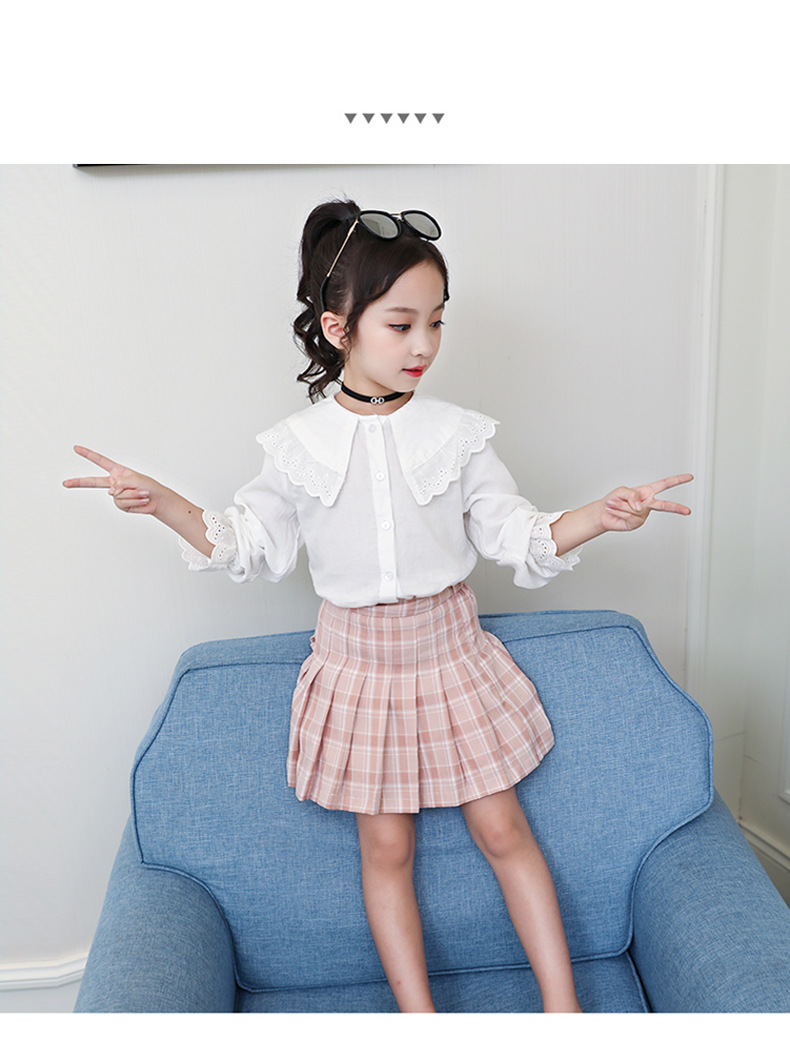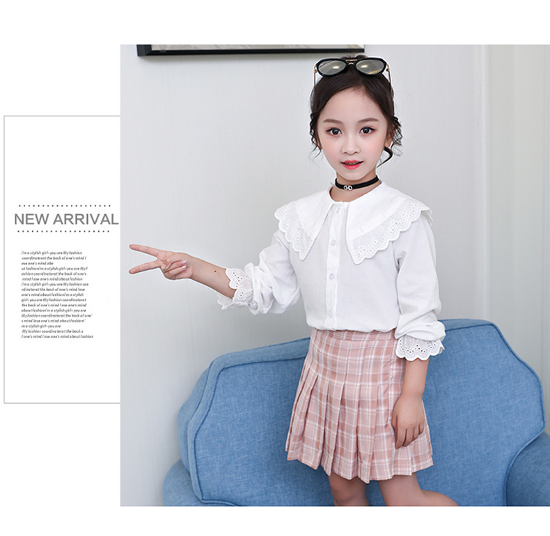 소녀 인형 칼라 셔츠 봄과 가을 의류 2024 여름 새로운 어린이 달콤한 패션 올 매치 셔츠 어린이 셔츠