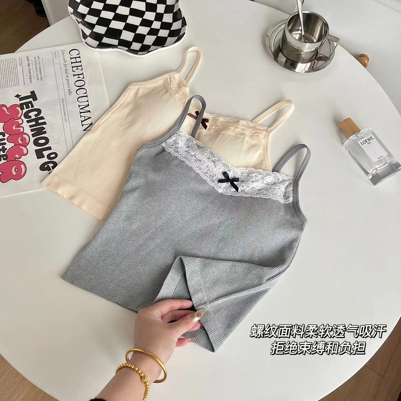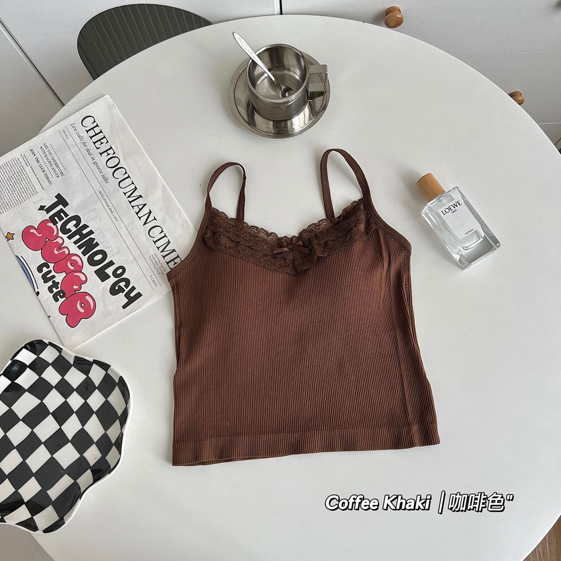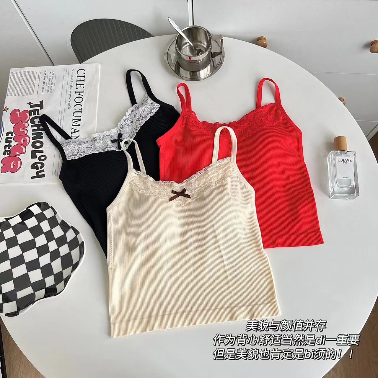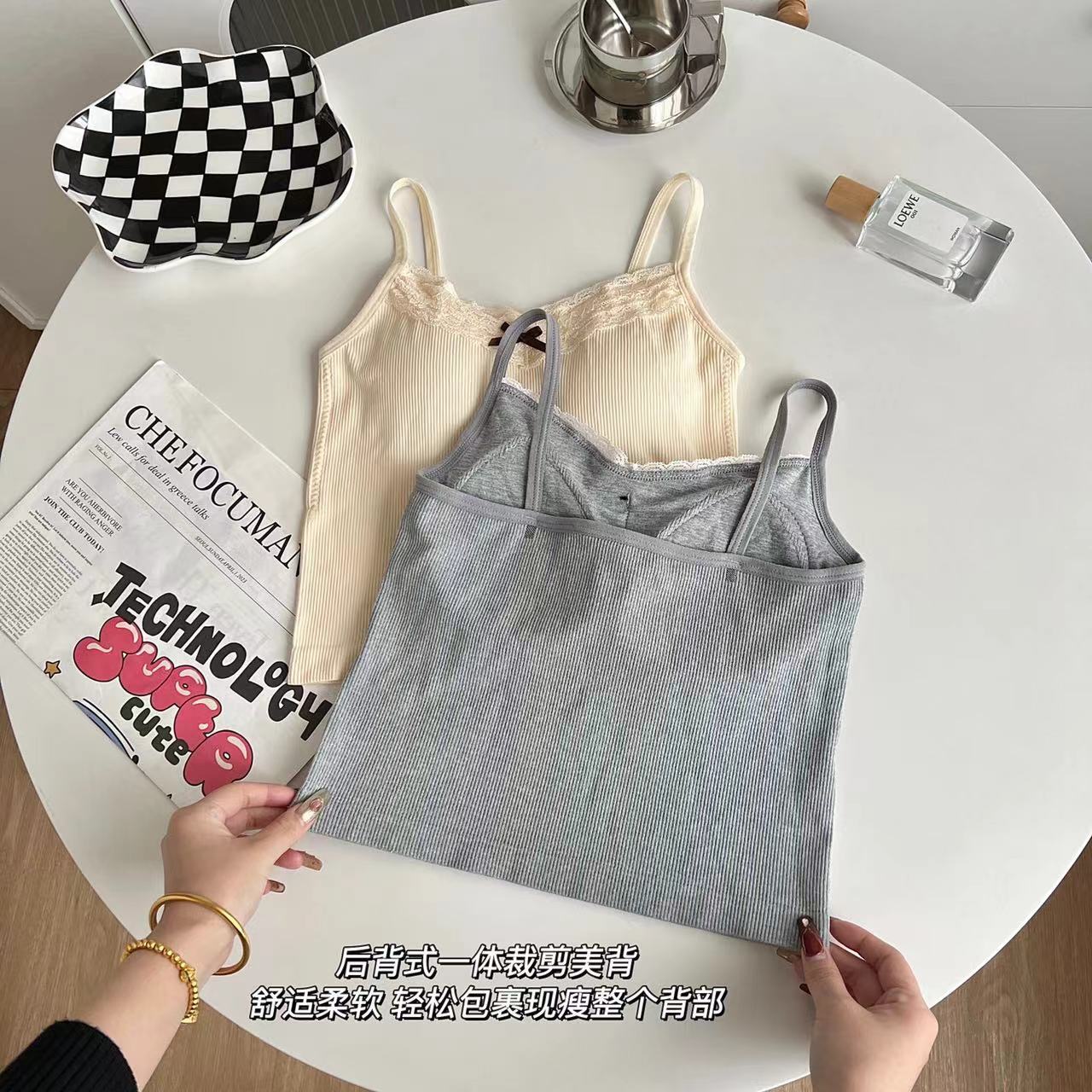 뜨거운 소녀 레이스 순수한 욕망 캐미솔 여름 가슴 패드 내부 베이스 슬림 핏 뷰티 백 통합 고정 컵 튜브 탑스토어 가기