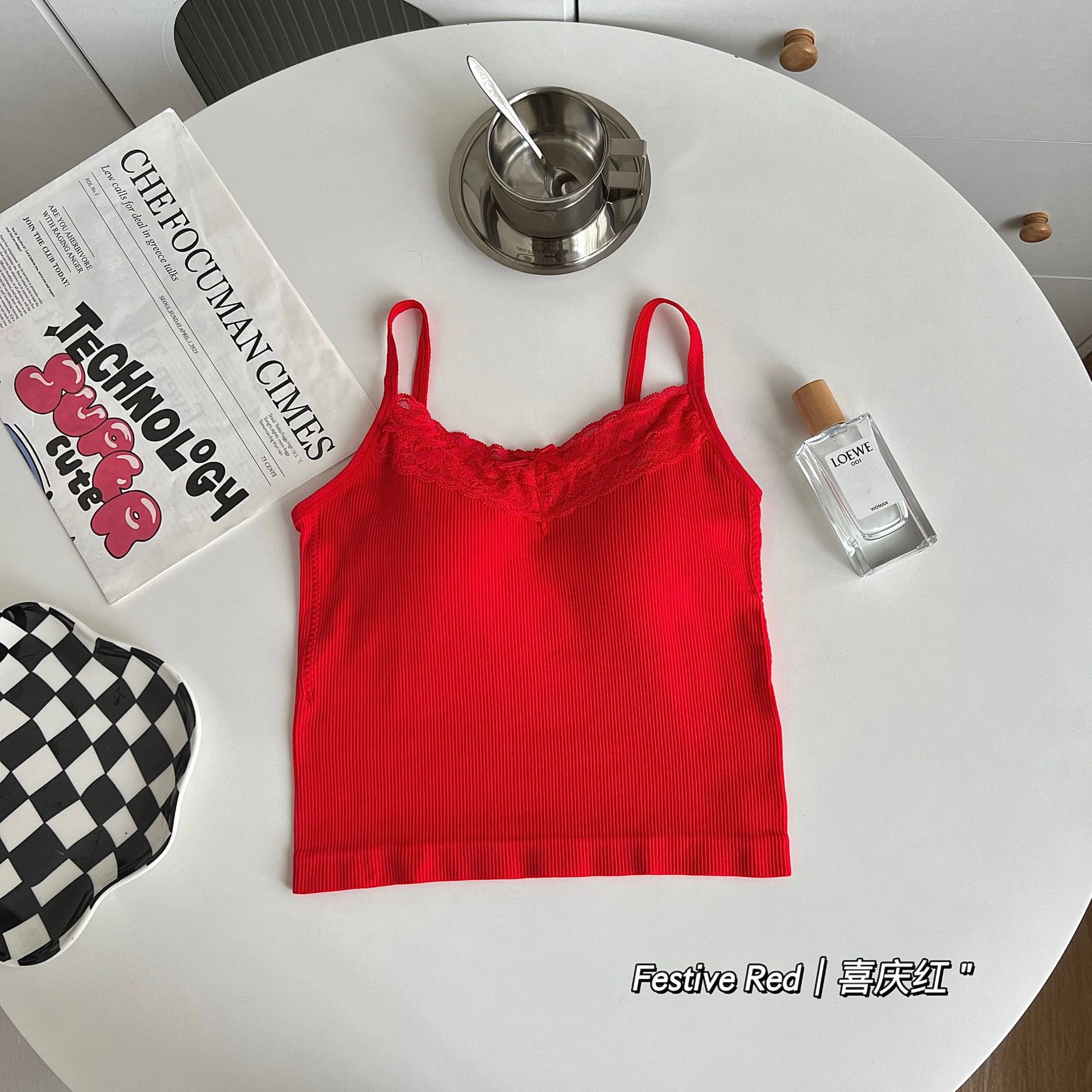뜨거운 소녀 레이스 순수한 욕망 캐미솔 여름 가슴 패드 내부 베이스 슬림 핏 뷰티 백 통합 고정 컵 튜브 탑