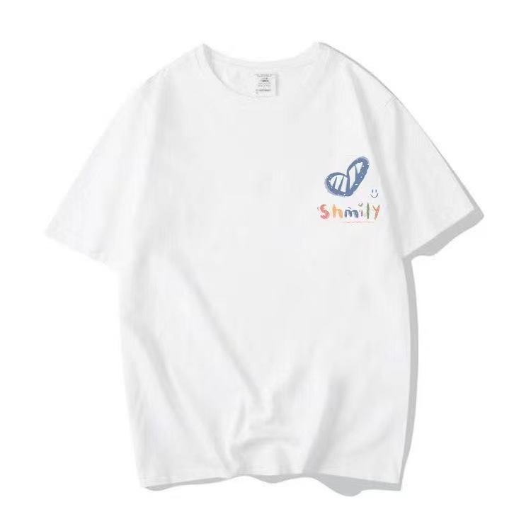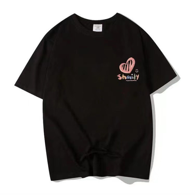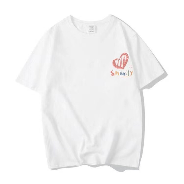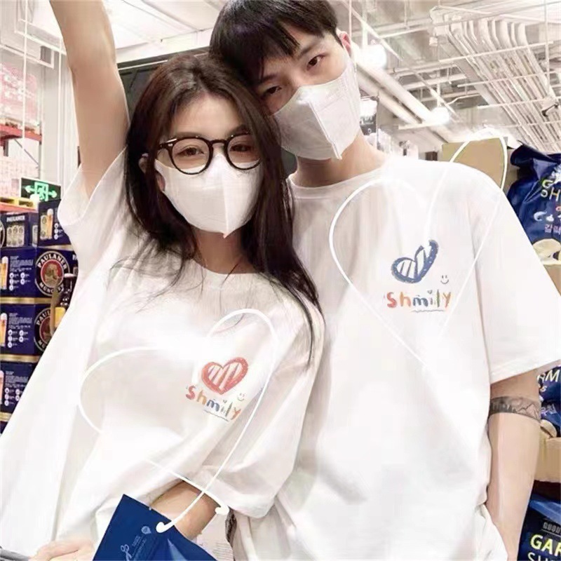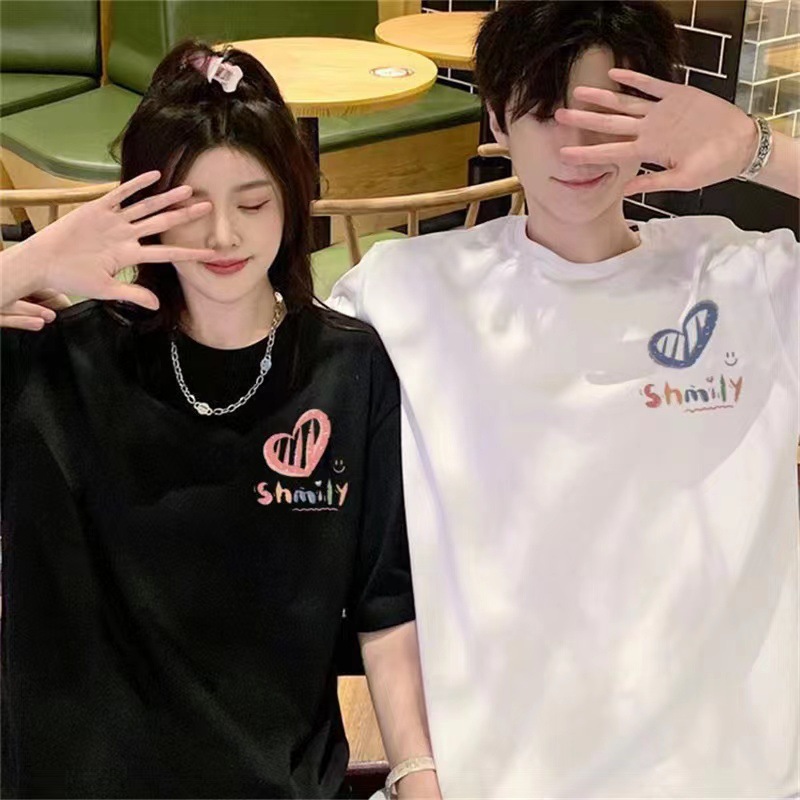 커플의베이스 반팔 2024 새로운 사랑 인쇄 티셔츠 인 디자인 센스 남성과 여성의 탑 티셔츠 여성스토어 가기