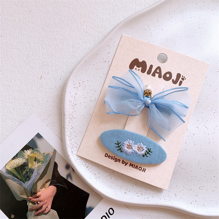 어린이 신선한 푸른 나비 머리핀 달콤한 소녀의 자수 꽃 BB 클립 앞머리 부러진 머리 옆 클립 머리핀