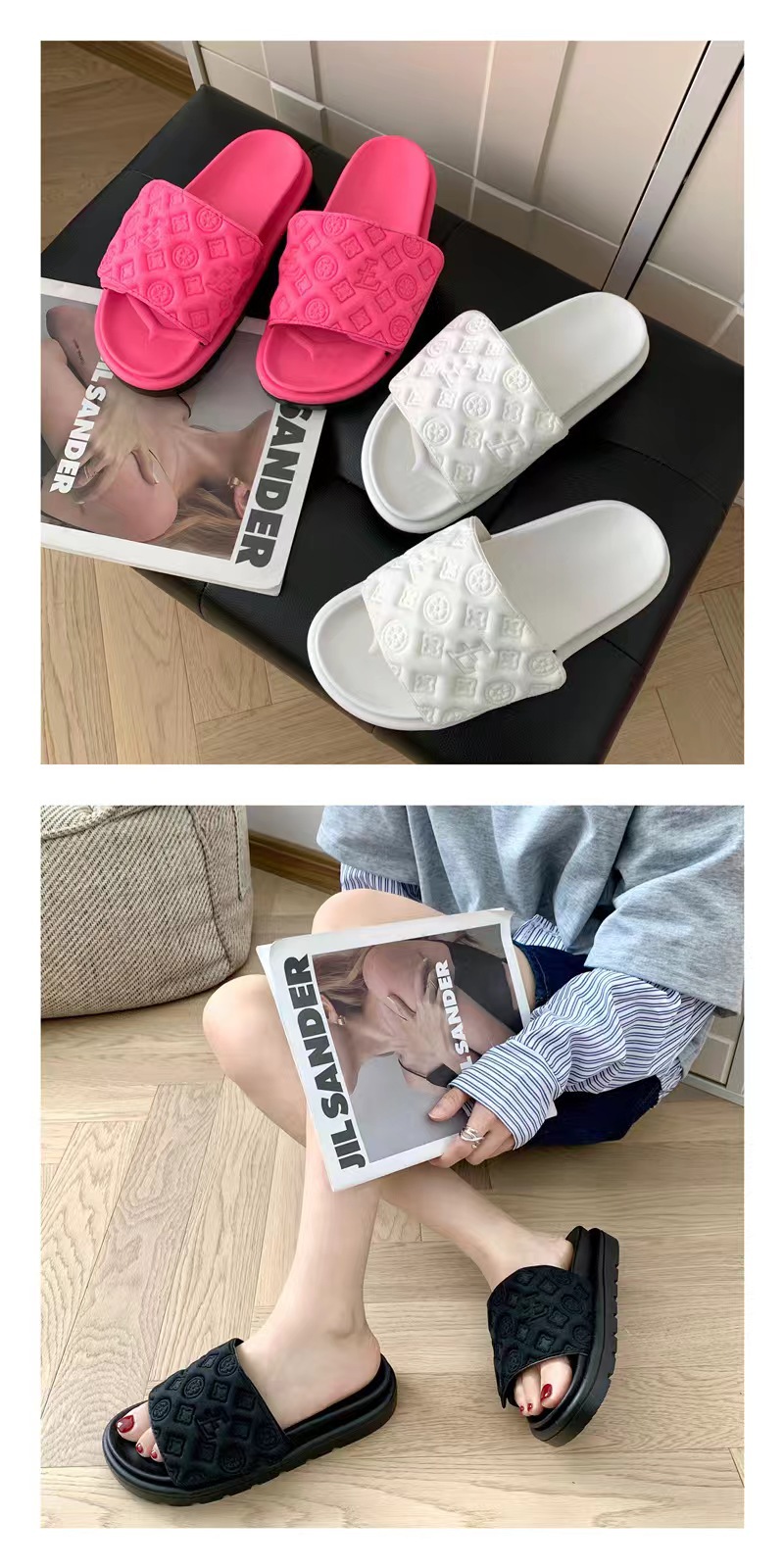 새로운 플랫폼 슬리퍼 여성 여름 야외 머핀 엠보싱 벨크로 빵 신발 넷 레드 패션 비치 샌들스토어 가기
