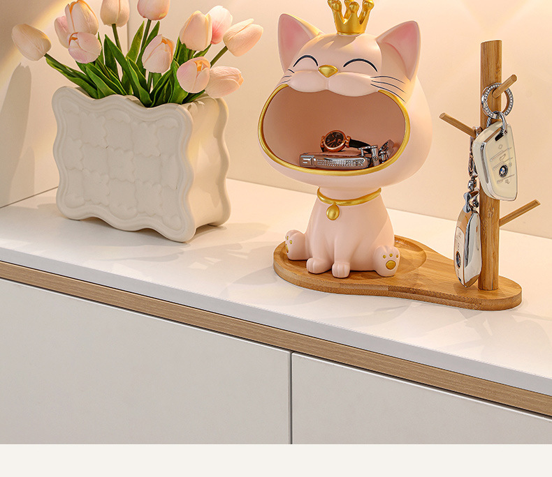 가벼운 고급 큰 입 고양이 집 왕자이 거실 장식 항목 키 저장 크라운 포춘 고양이 장식 복도 신발 캐비닛
