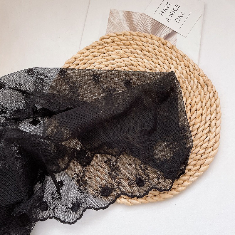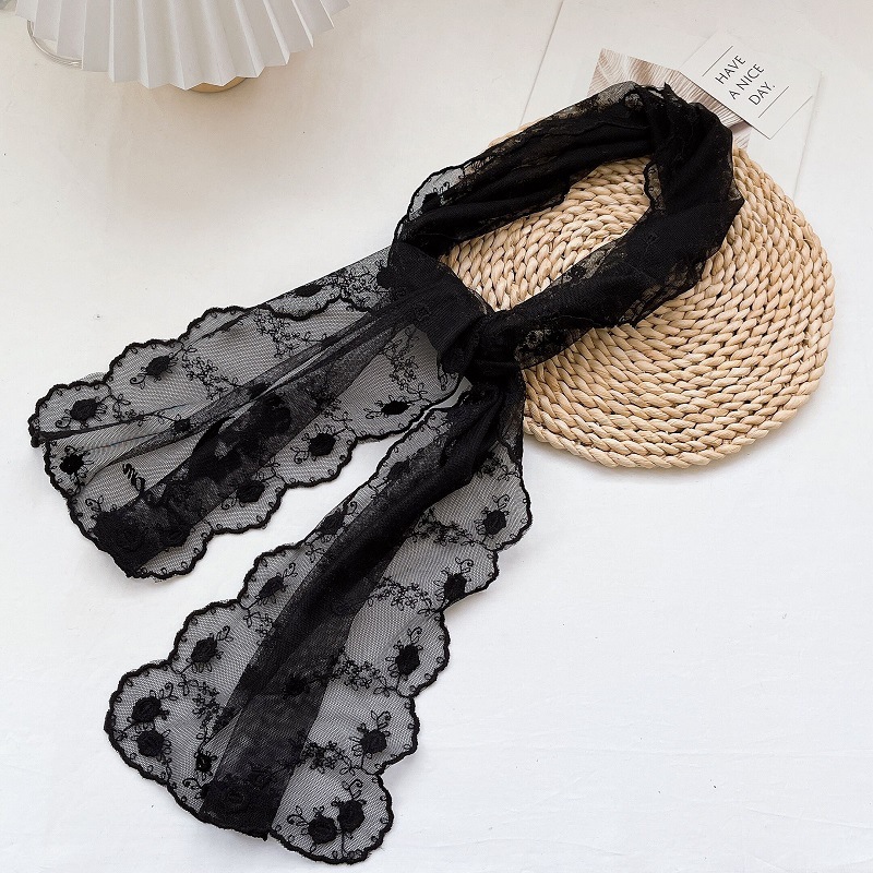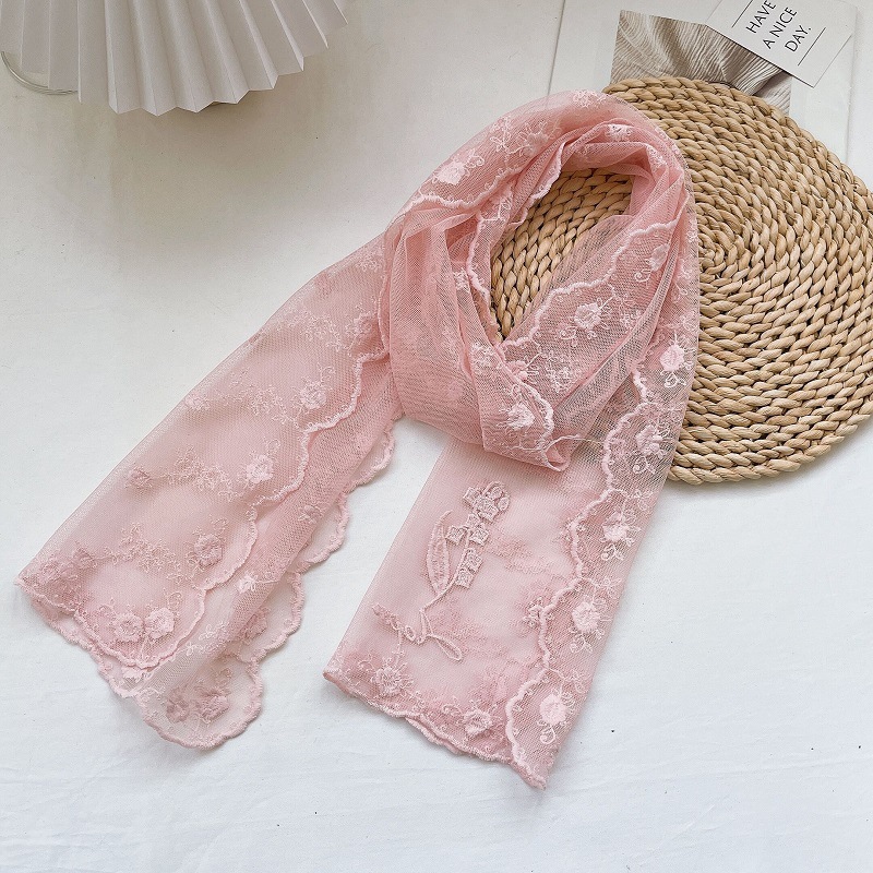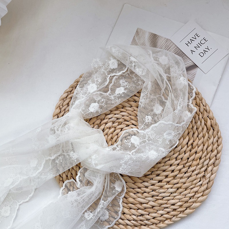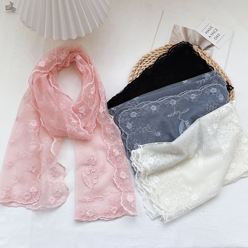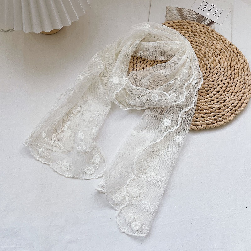 韩国订单款 fle*ta蕾丝花边铃花刺绣透视丝巾围巾配饰百搭时尚巾