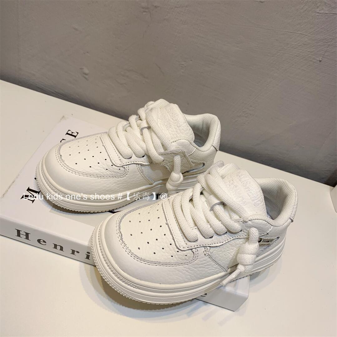 1층 소가죽 아동용 흰색 신발 2025 봄 신상 남아 캐주얼 신발 여아 스포츠 통기성 부드러운 밑창 신발