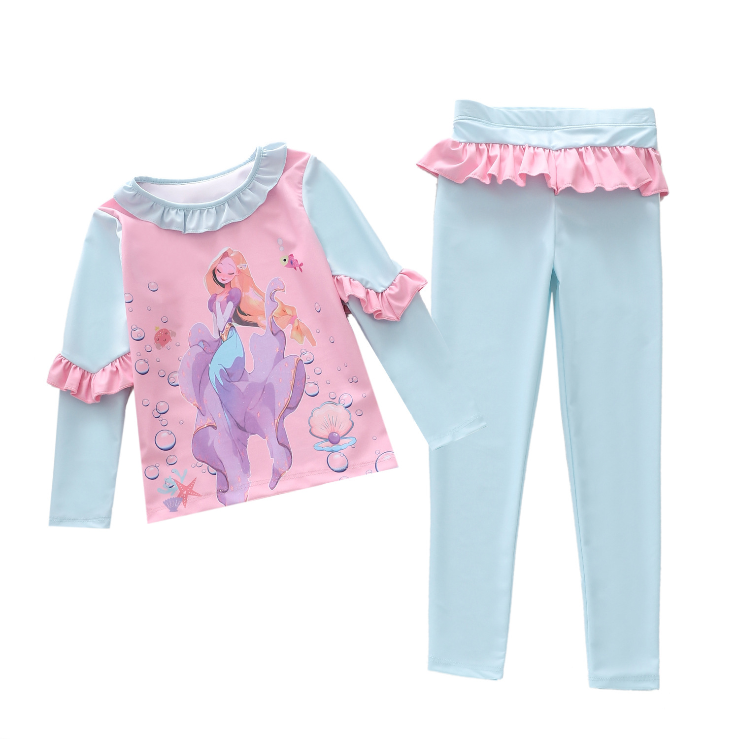 2024 어린이 수영복 소녀 투피스 수영복 긴팔 바지 보수적 인 귀여운 소녀의 소형 중형 및 대형 어린이 수영복