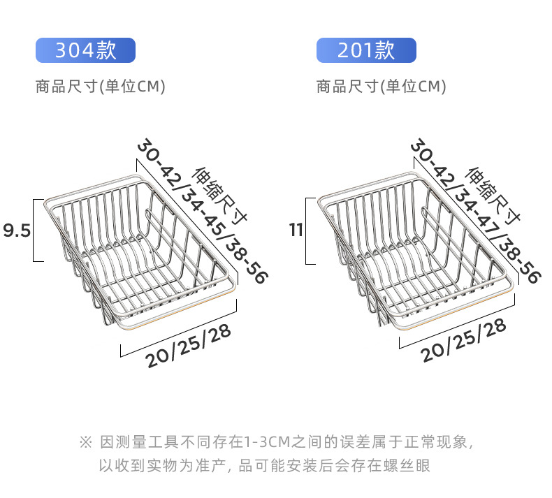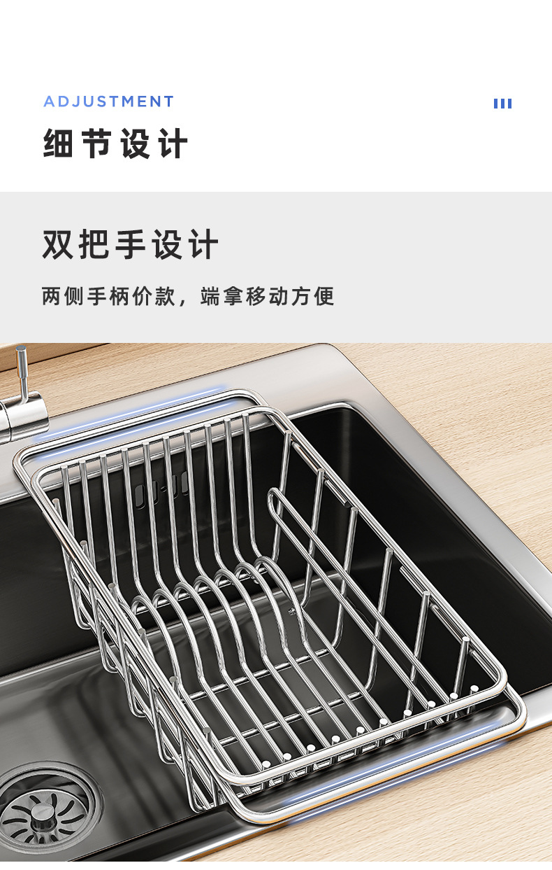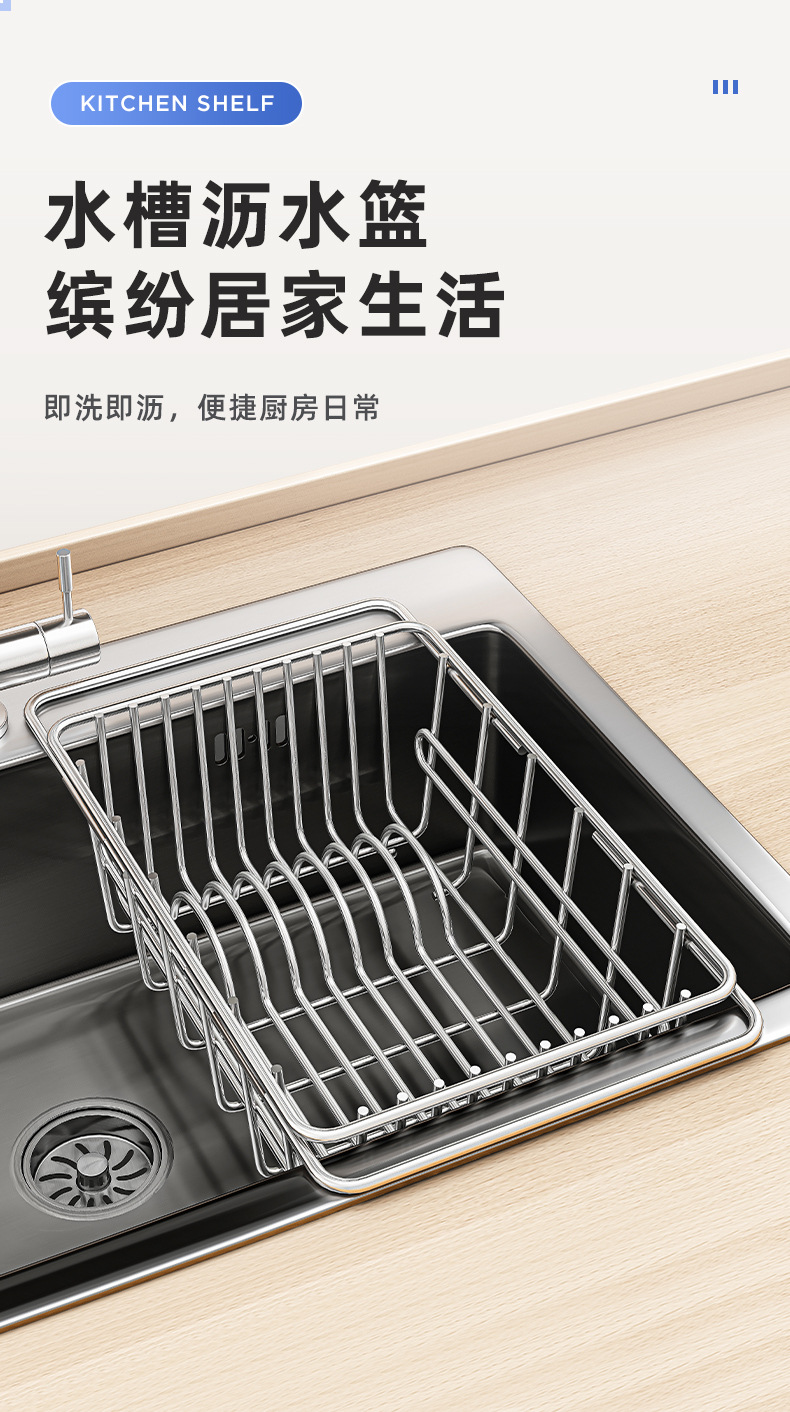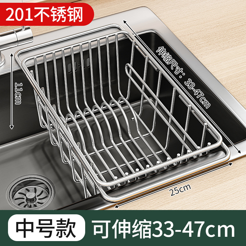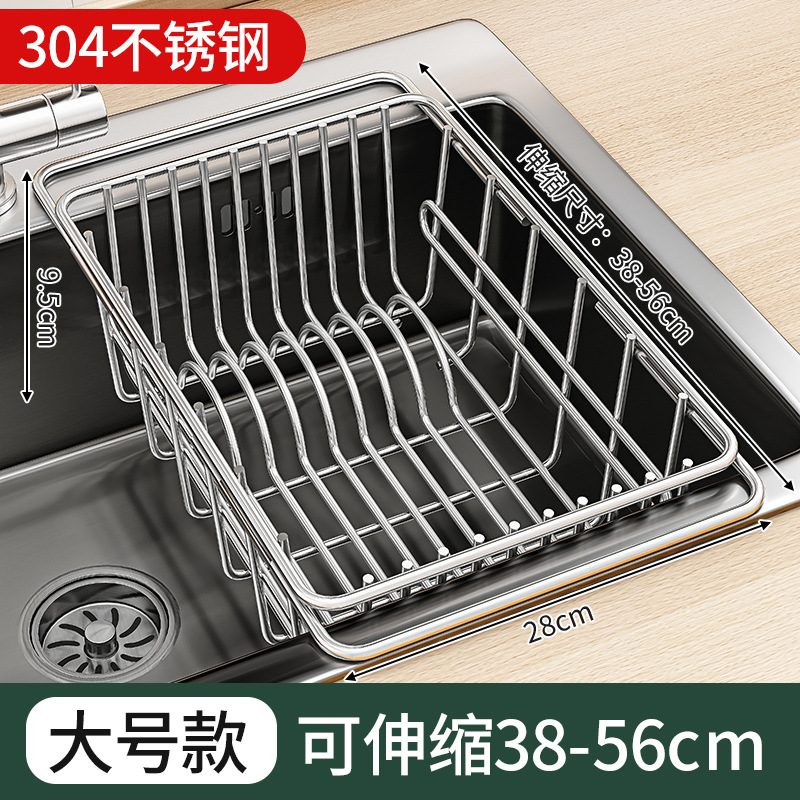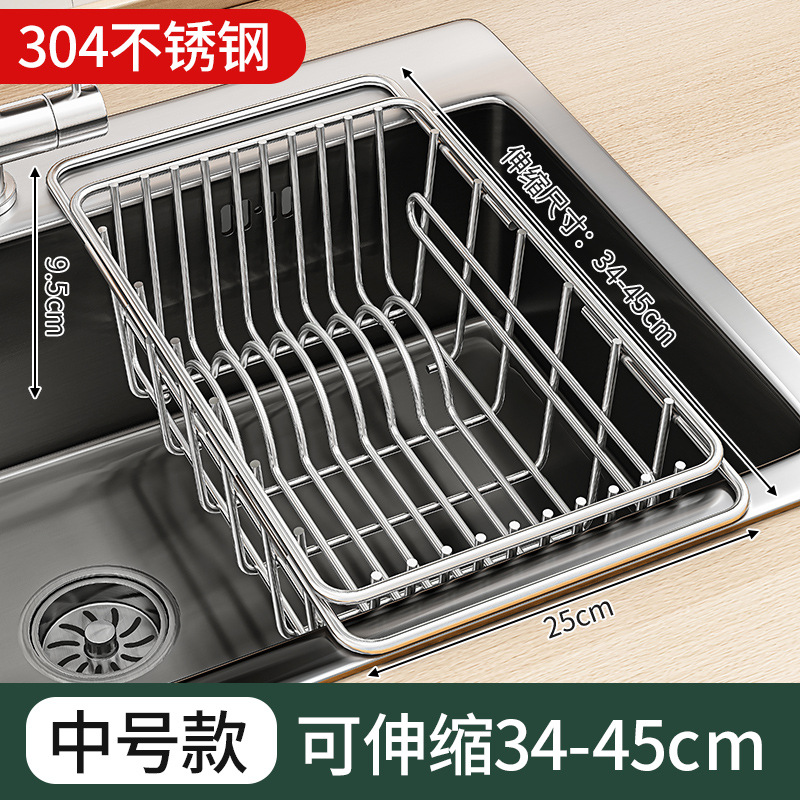 304不锈钢厨房水槽沥水篮子洗碗池碗架可伸缩碗盘果蔬收纳置物架
