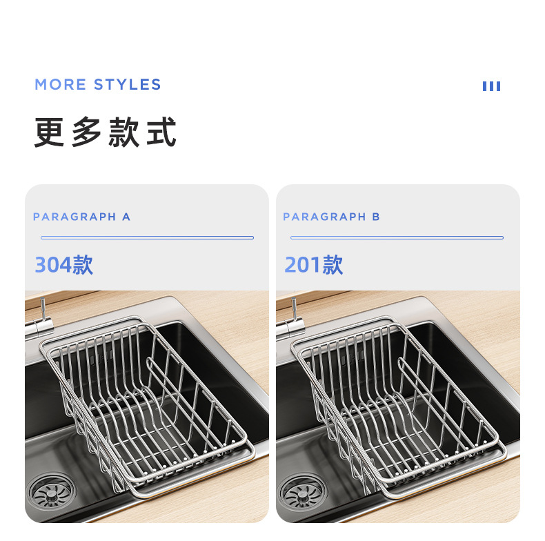 304 스테인레스 스틸 주방 싱크대 배수 바구니 싱크대 접시 랙 개폐식 요리 과일 및 야채 저장 랙스토어 가기