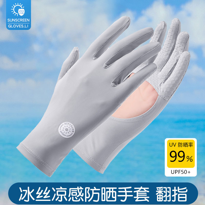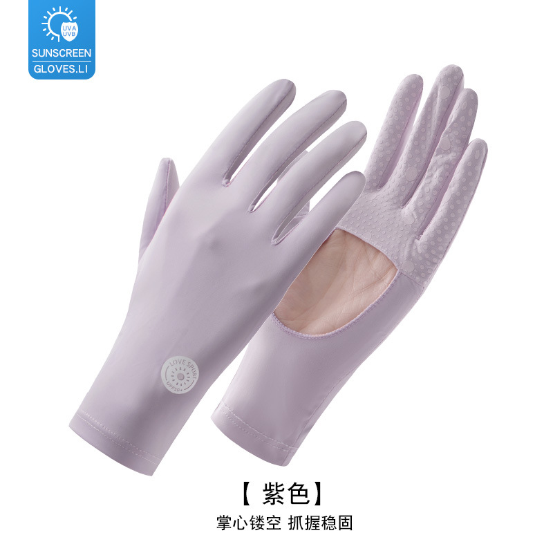 새로운 태양 보호 장갑 여성의 빈 손바닥 여름 UV 보호 미끄럼 방지 얼음 느낌 승마 장갑 팜 중공 F1 운전