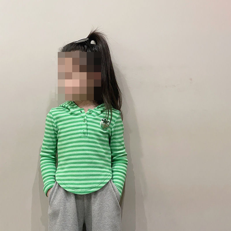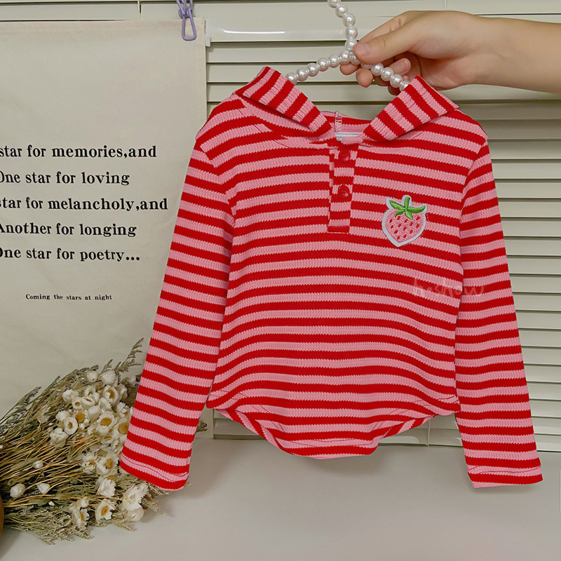 소녀 스트라이프 스웨터 2024 한국식 봄 소녀 귀여운 딸기 후드 티셔츠 달콤한 캐주얼 탑 0156