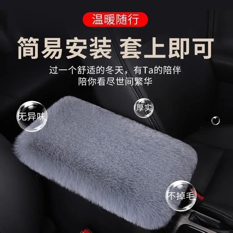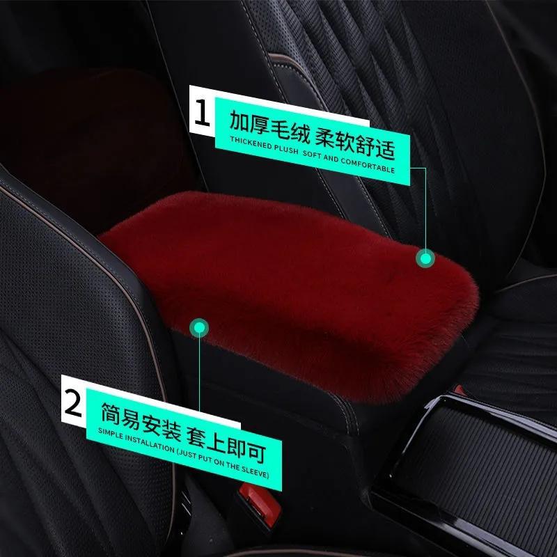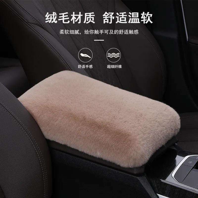 새로운 자동차 팔걸이 상자 패드 모방 렉스 토끼 플러시 자동차 중앙 팔걸이 상자 커버 팔 패드 보편적 인 자동차 장식 인테리어스토어 가기