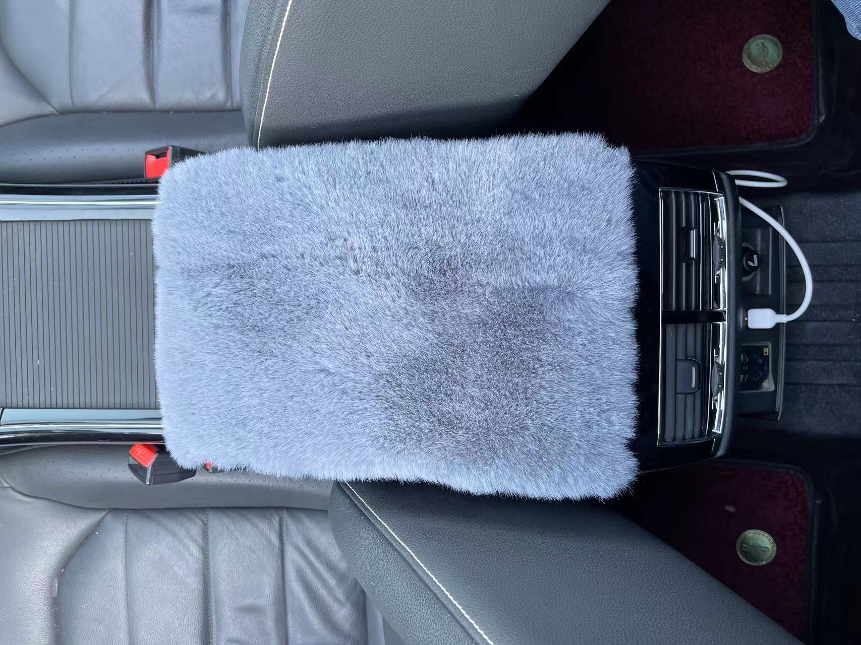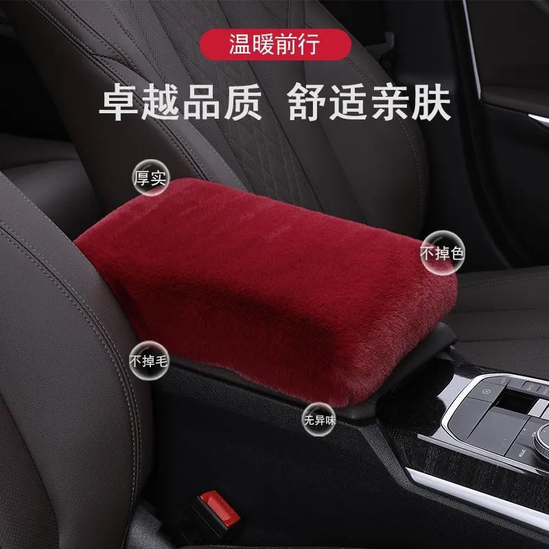 새로운 자동차 팔걸이 상자 패드 모방 렉스 토끼 플러시 자동차 중앙 팔걸이 상자 커버 팔 패드 보편적 인 자동차 장식 인테리어