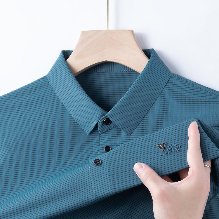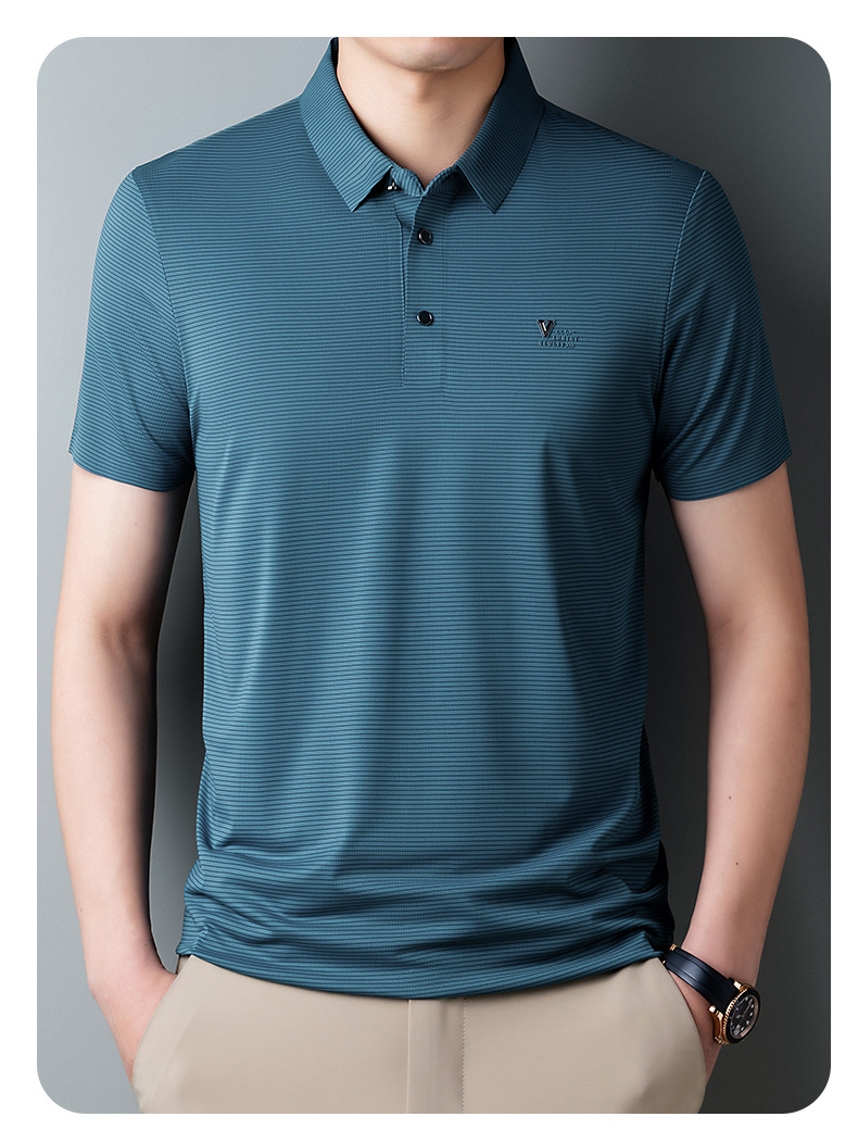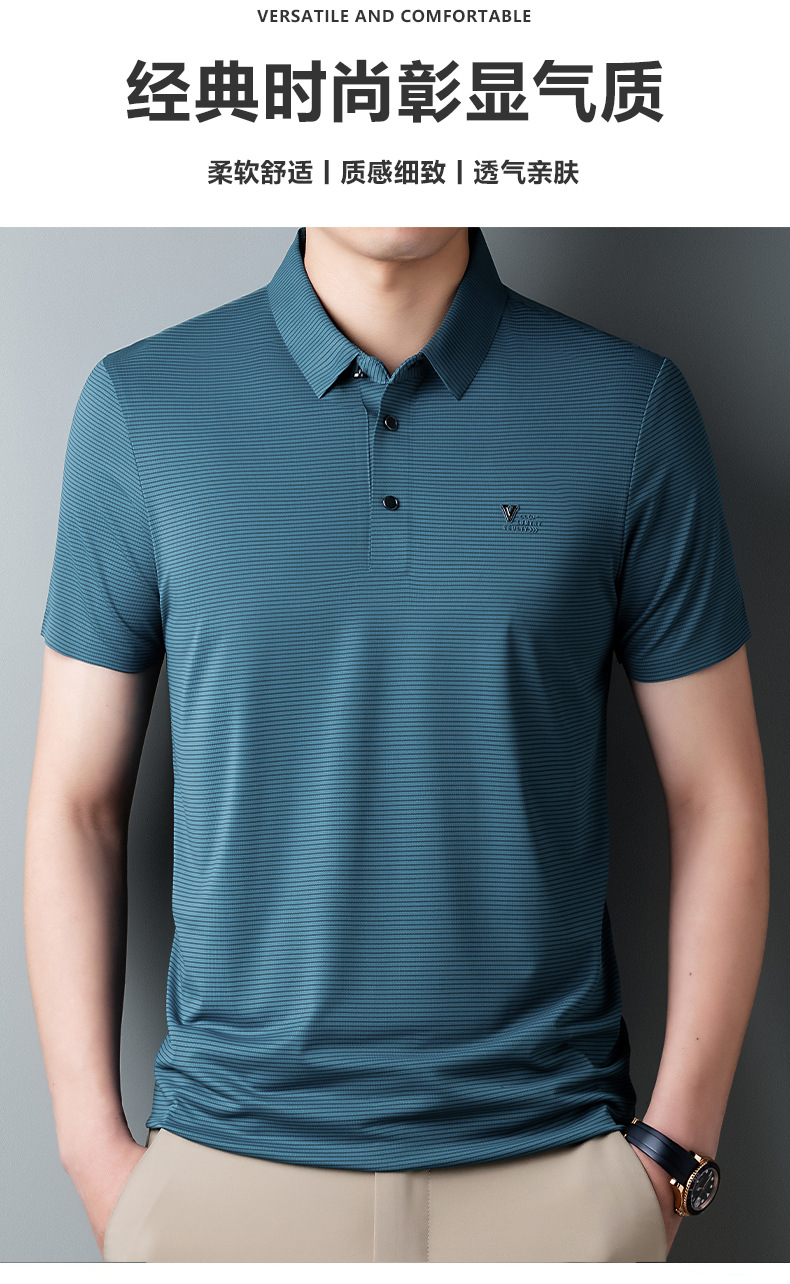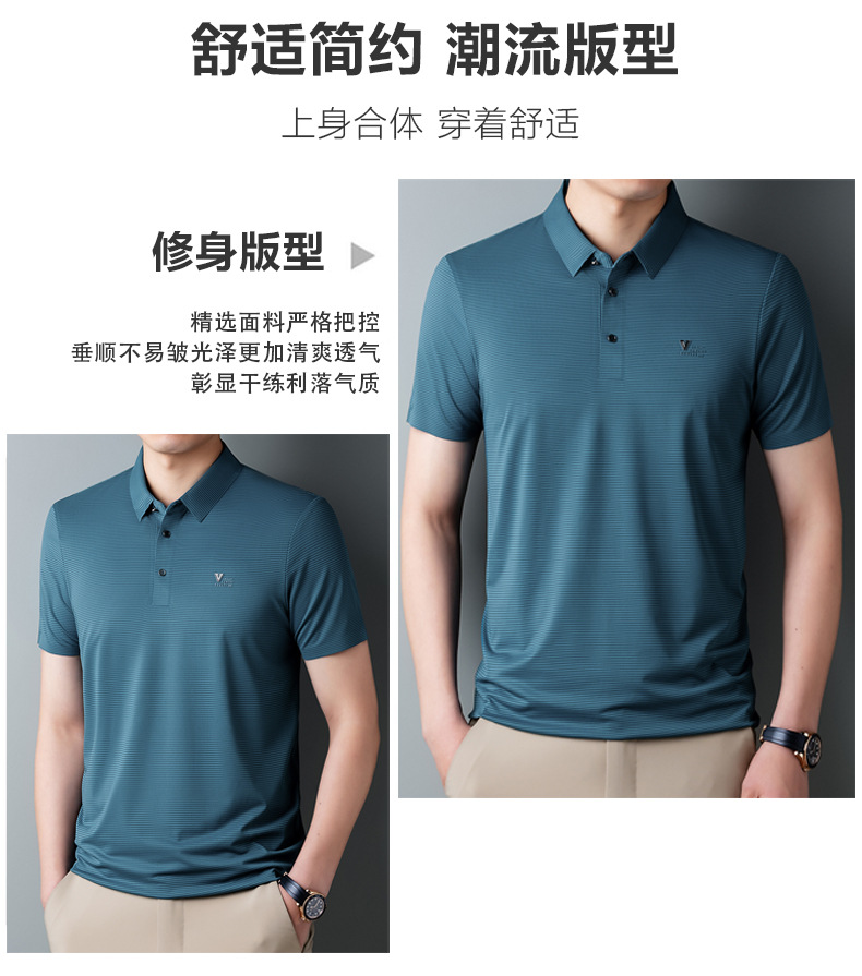 아이스 실크 옷깃 반소매 티셔츠 남성용 자카드 비즈니스 캐주얼 반소매 패션 모조 다이아몬드 아빠, 얇은 폴로 셔츠 착용스토어 가기