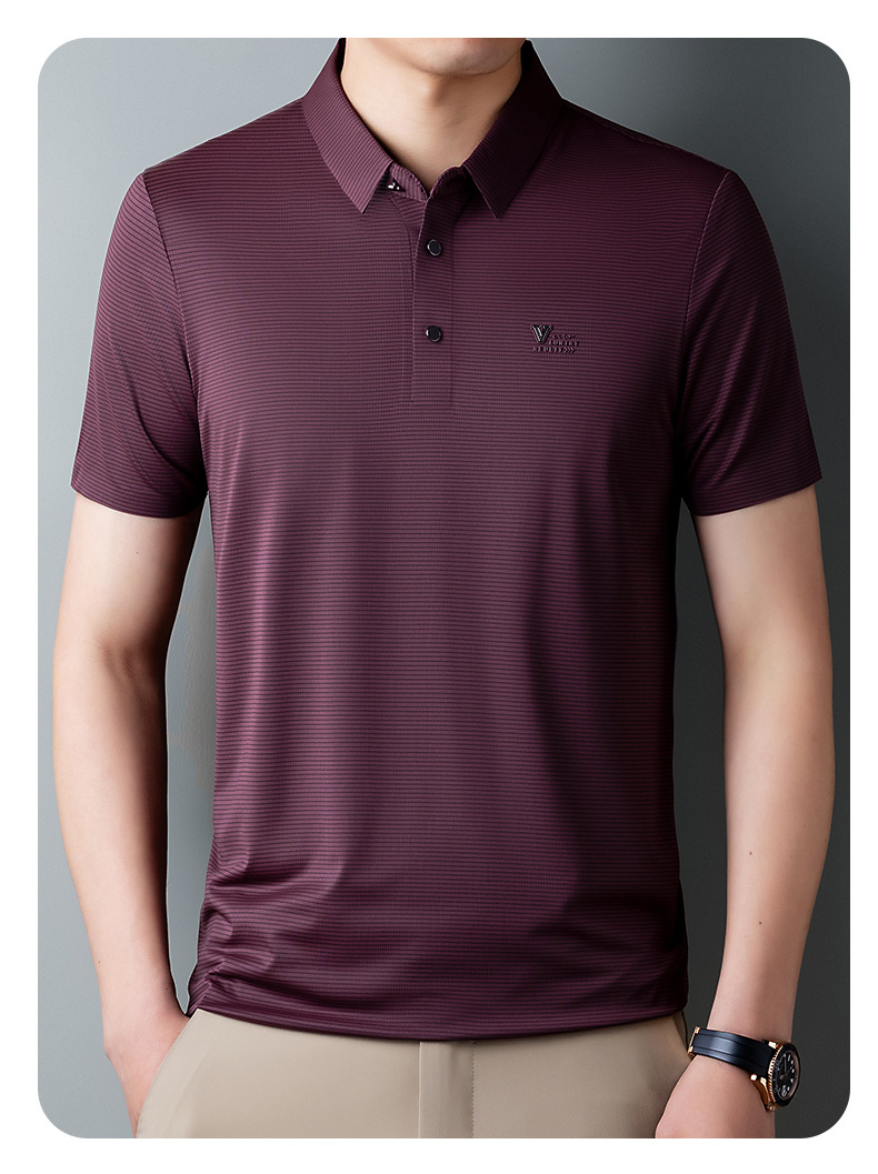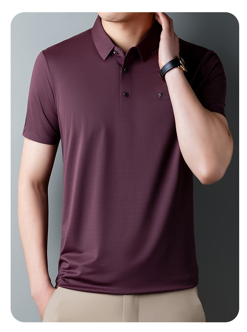 아이스 실크 옷깃 반소매 티셔츠 남성용 자카드 비즈니스 캐주얼 반소매 패션 모조 다이아몬드 아빠, 얇은 폴로 셔츠 착용