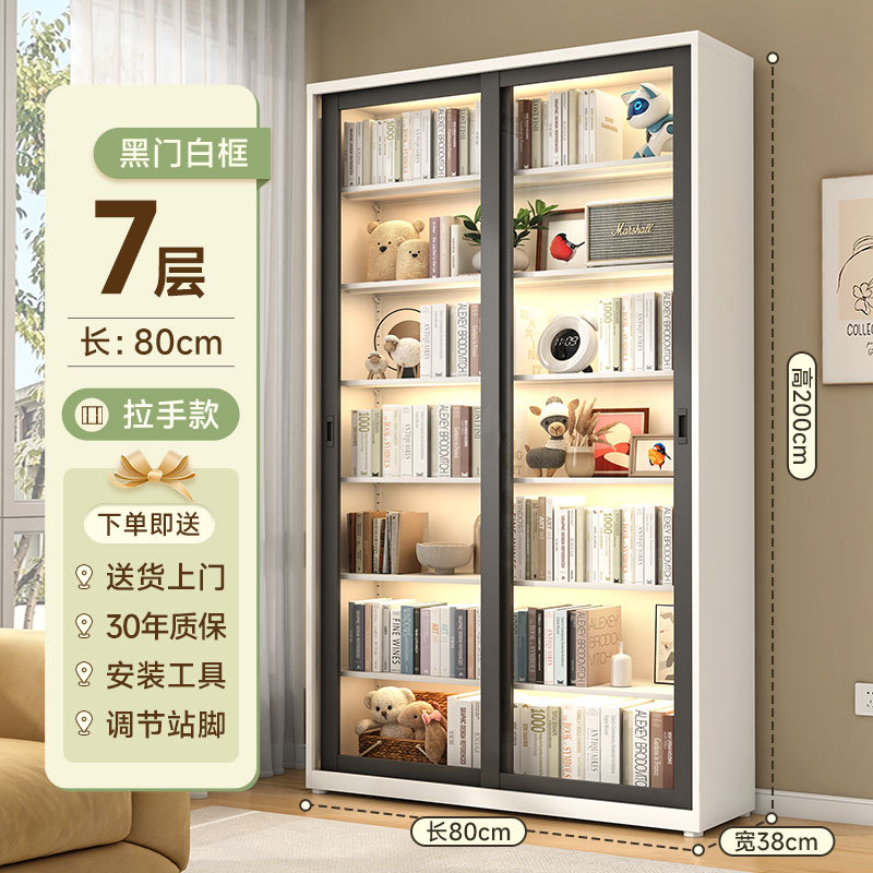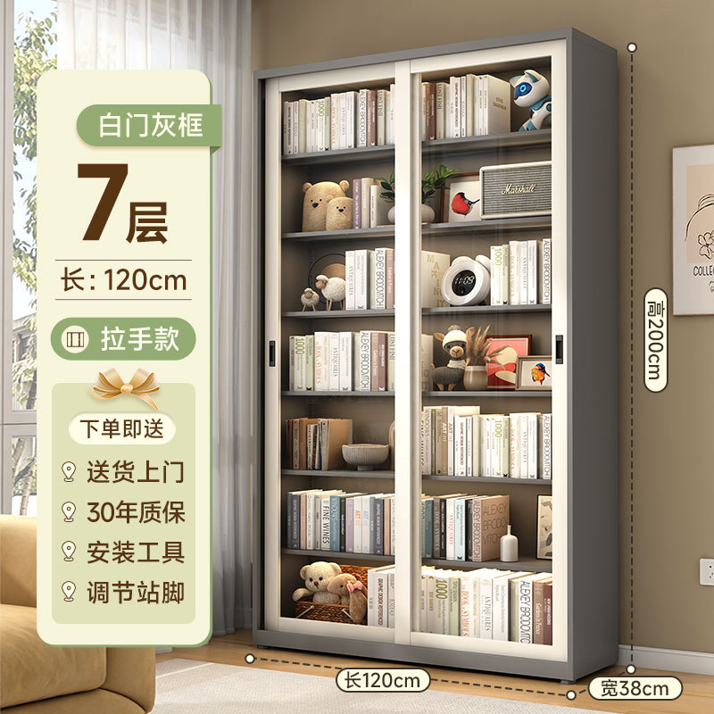 가정용 철 책장 슬라이딩 도어 방진 유리 책장 잠금 디스플레이 캐비닛 거실 다층 바닥 보관 캐비닛스토어 가기