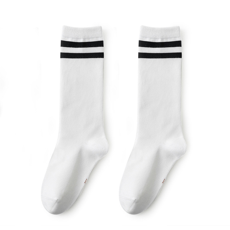 25 봄 여름 가을 화이트 학생 양말 더블바 미드 튜브 양말 어린이 양말 메쉬 양말 A급 무봉제 어린이 면 양말
