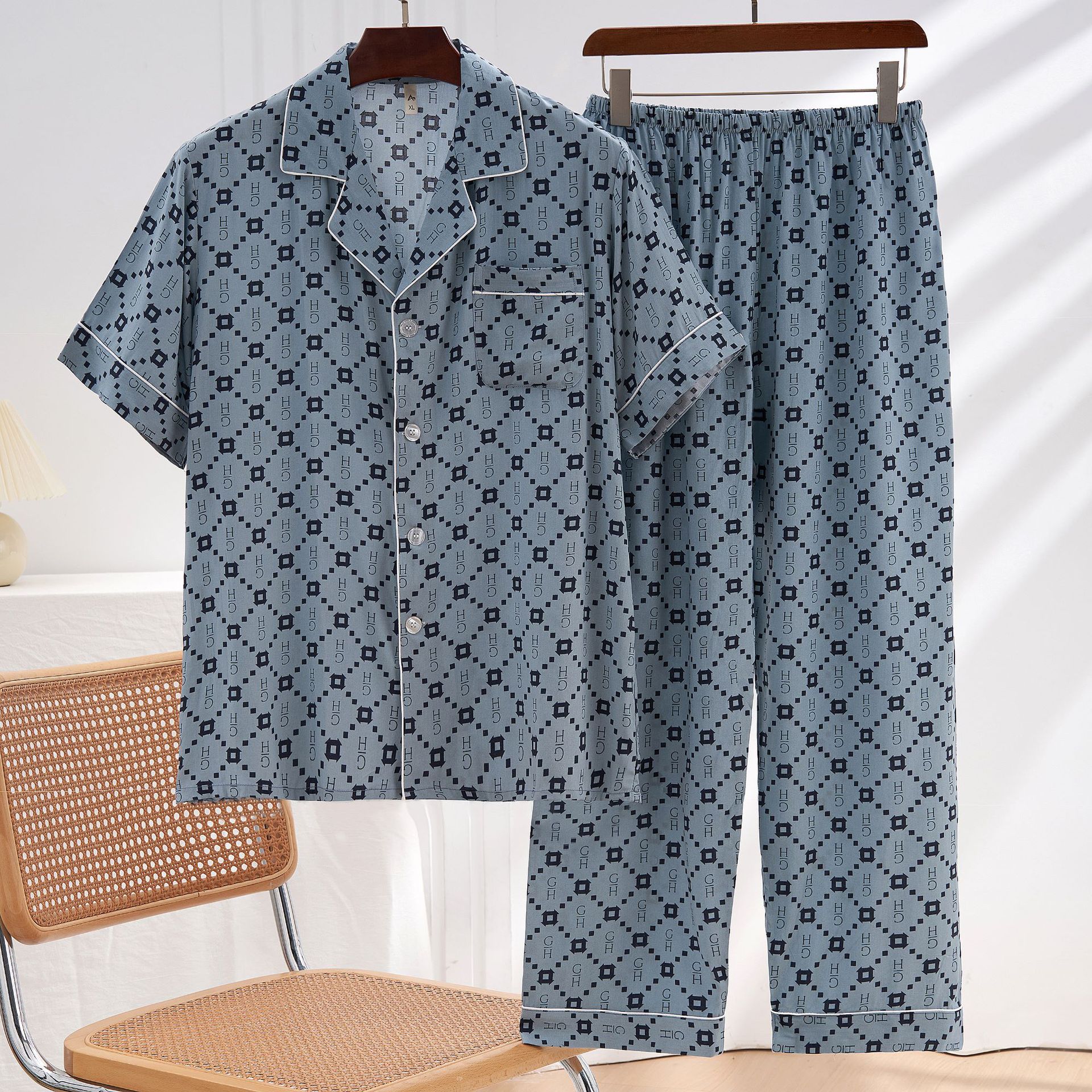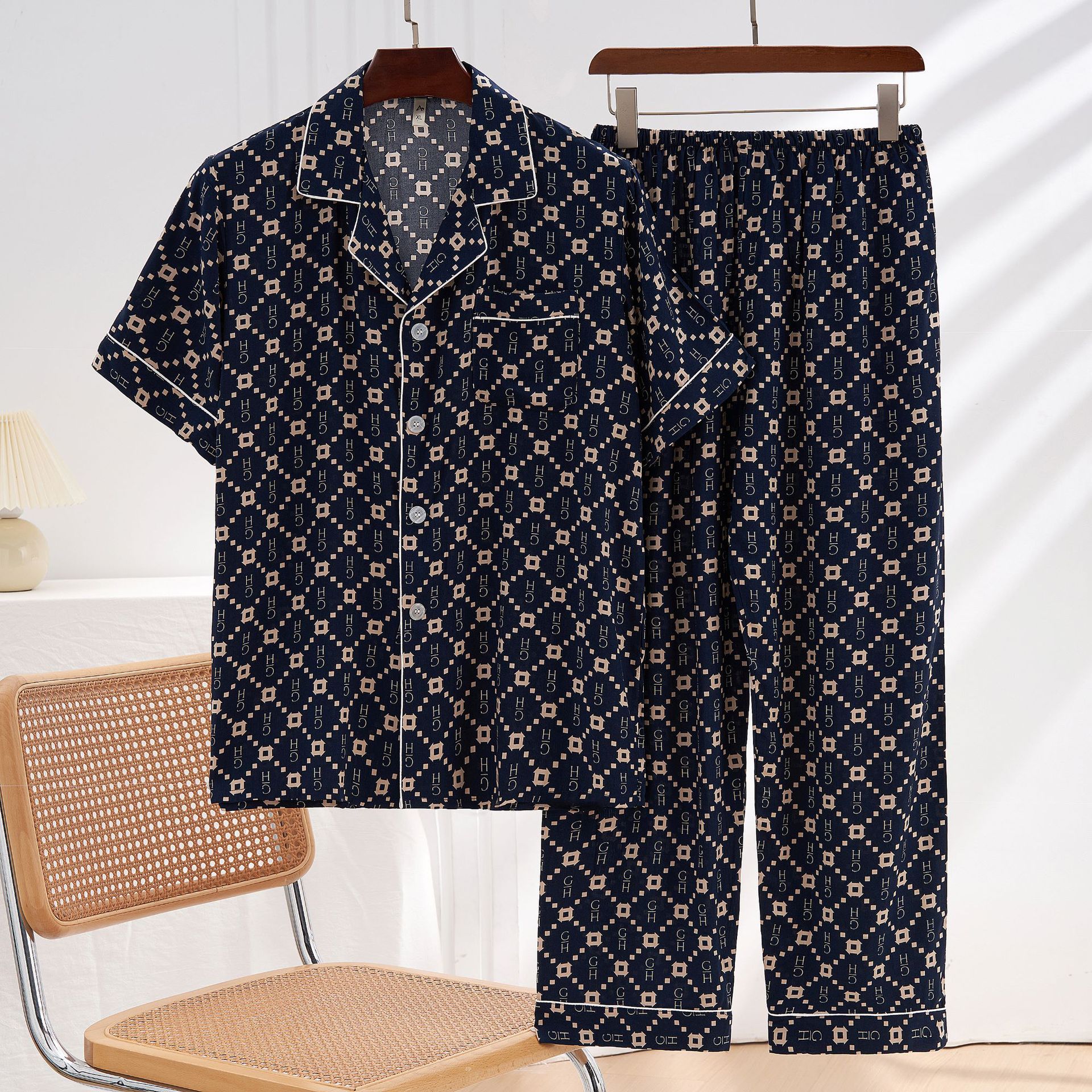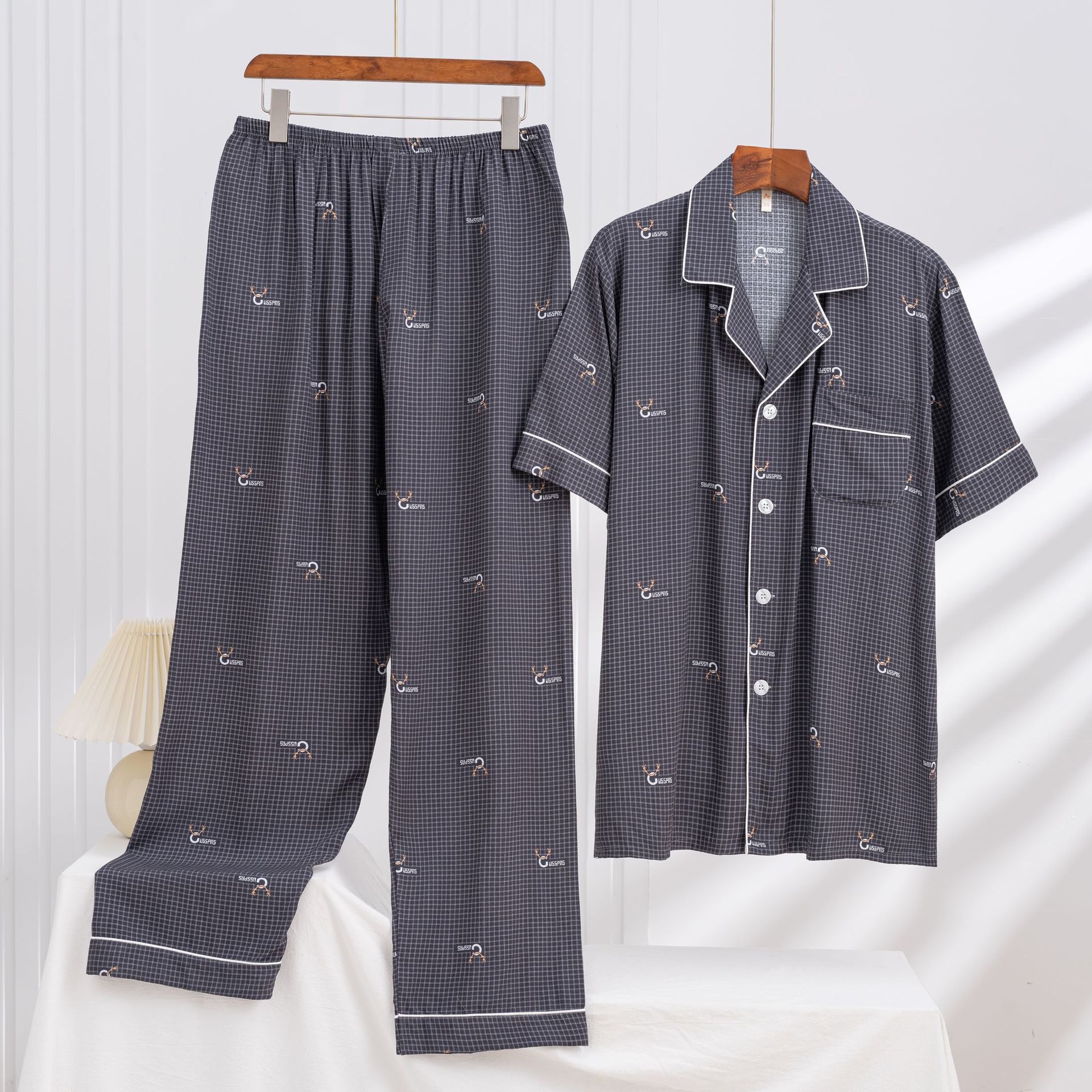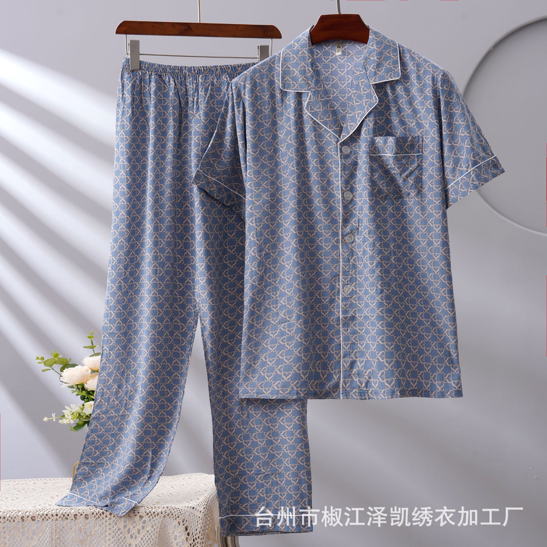 2024 새로운 남성 봄/여름 가을면 실크 반팔 카디건 파자마 얇은 느슨한 간단한 편안한 홈 웨어
