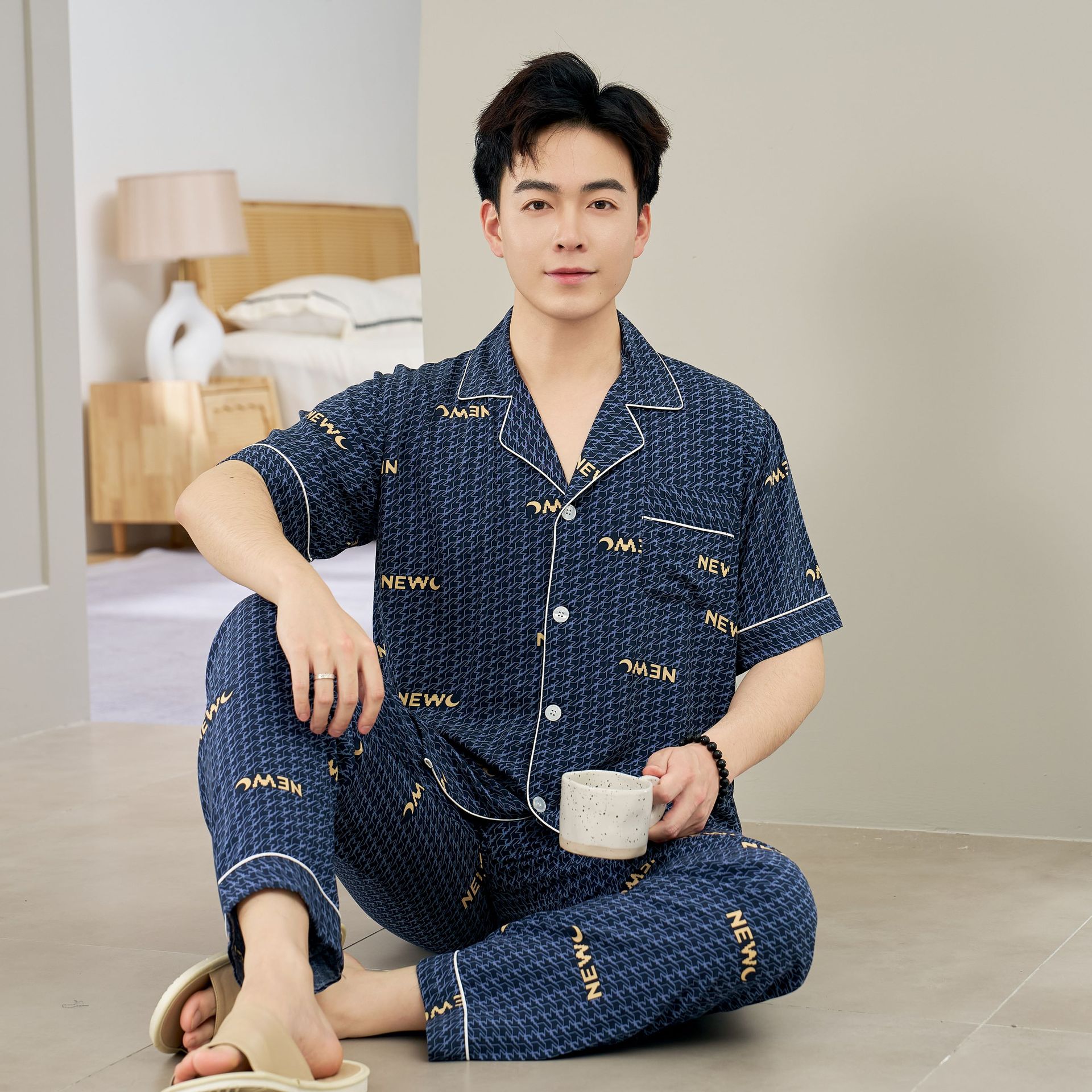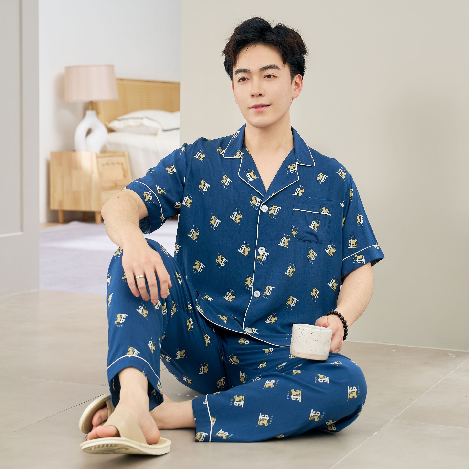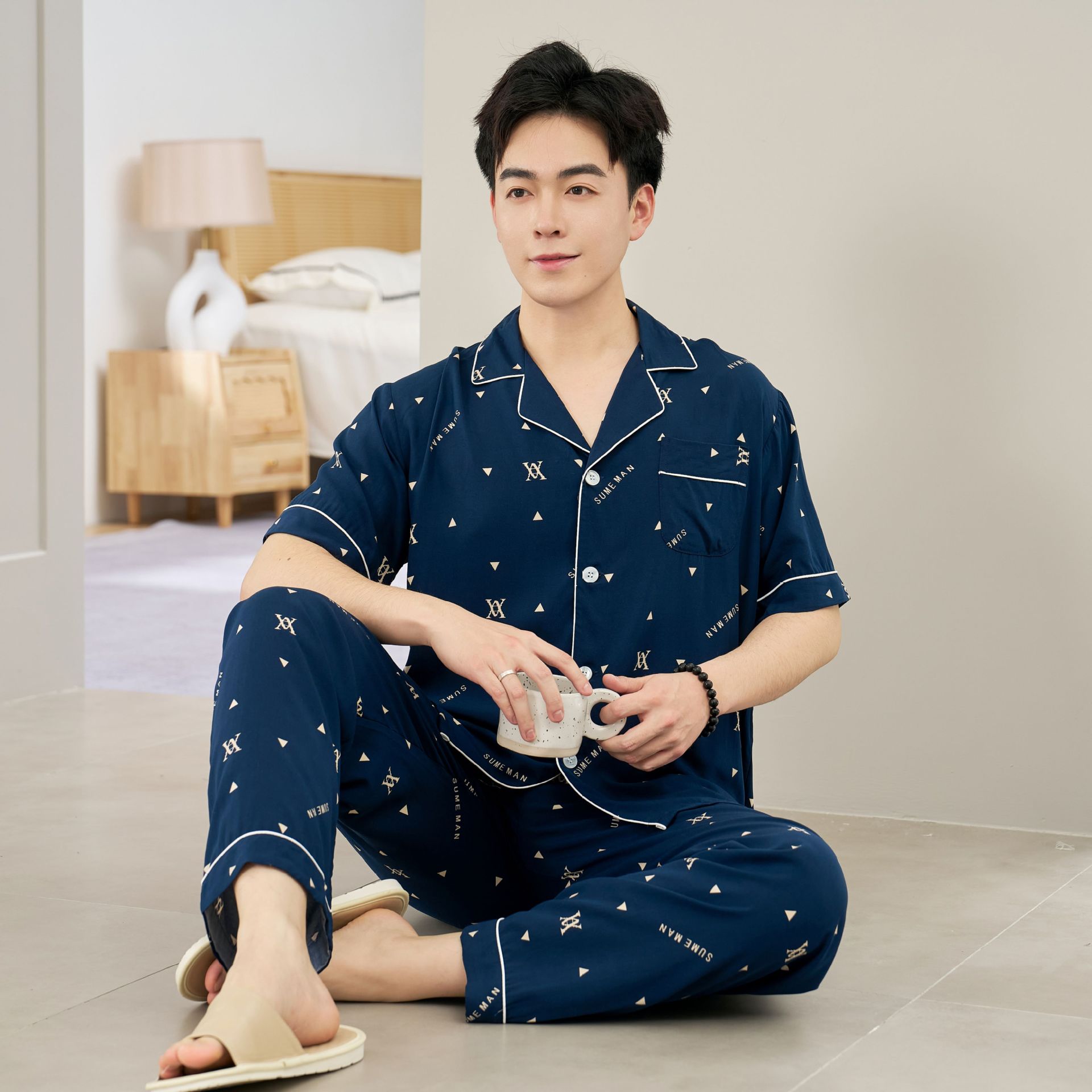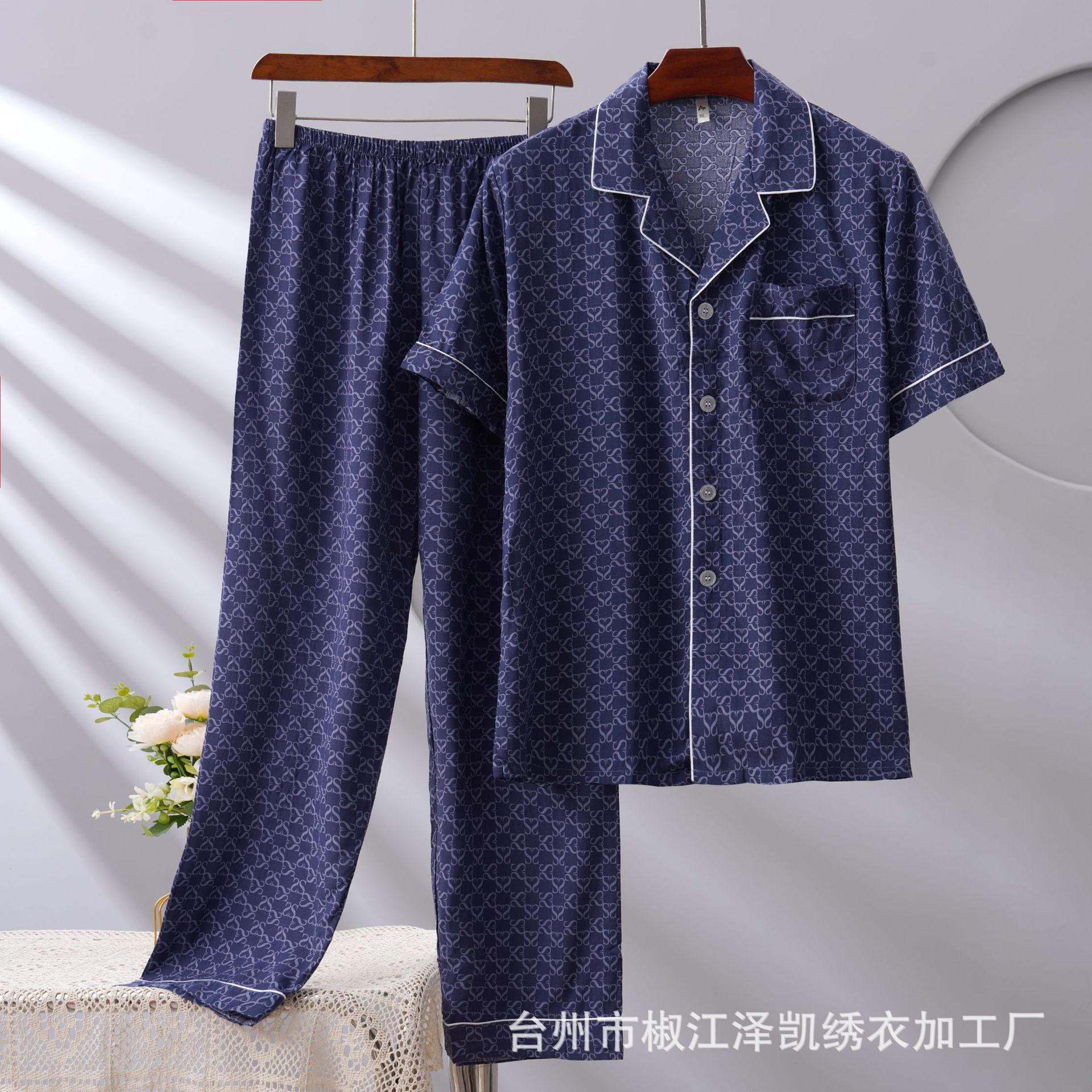 2024 새로운 남성 봄/여름 가을면 실크 반팔 카디건 파자마 얇은 느슨한 간단한 편안한 홈 웨어