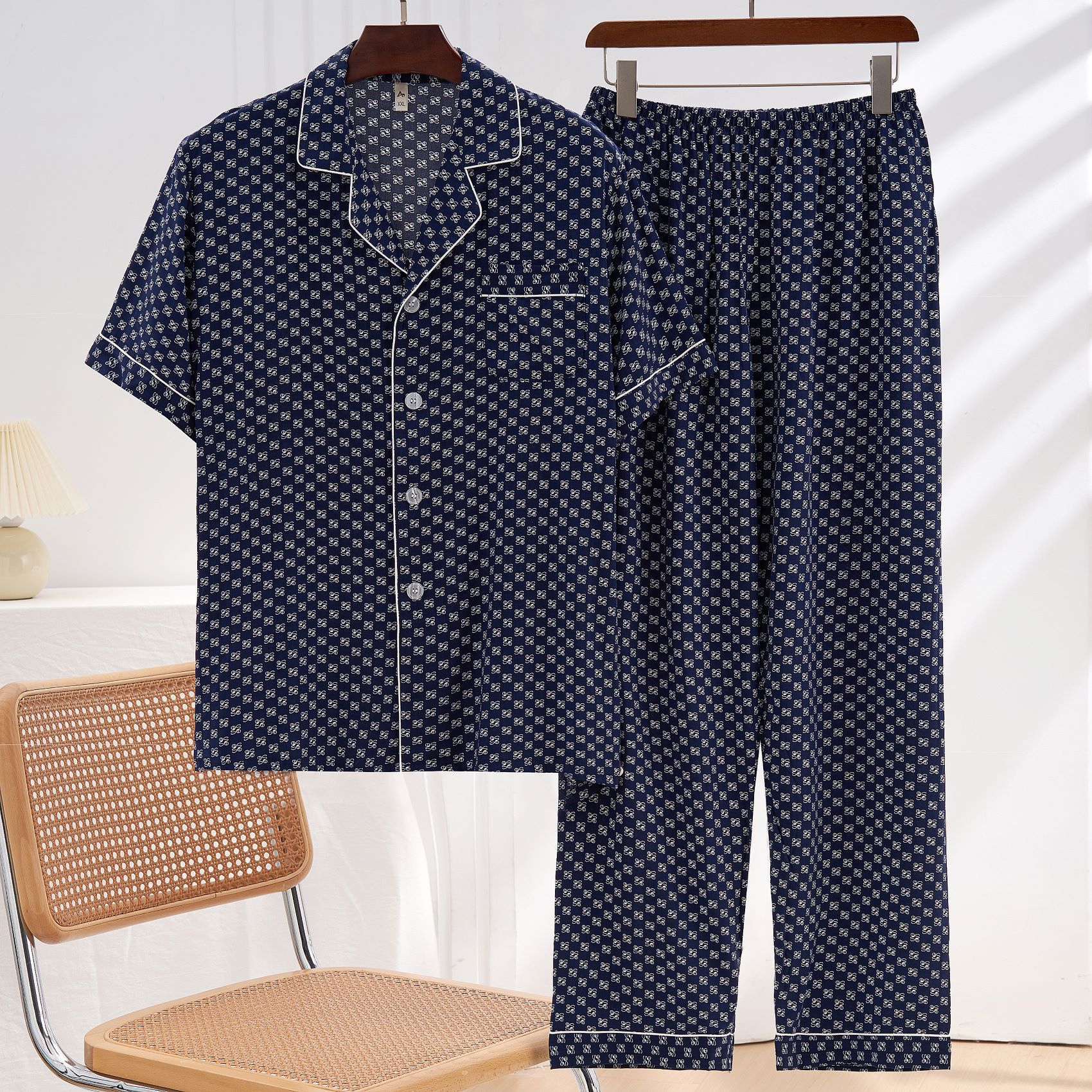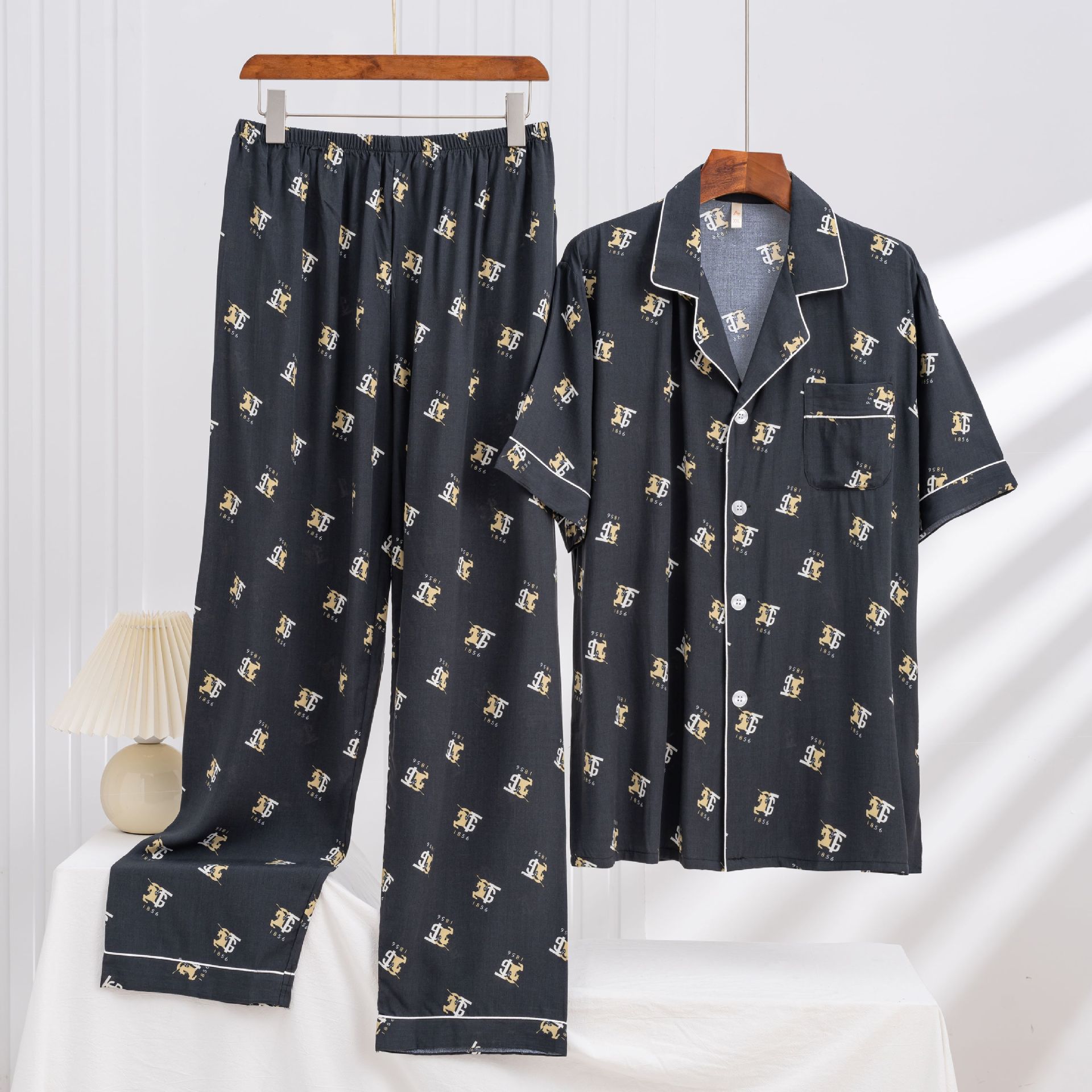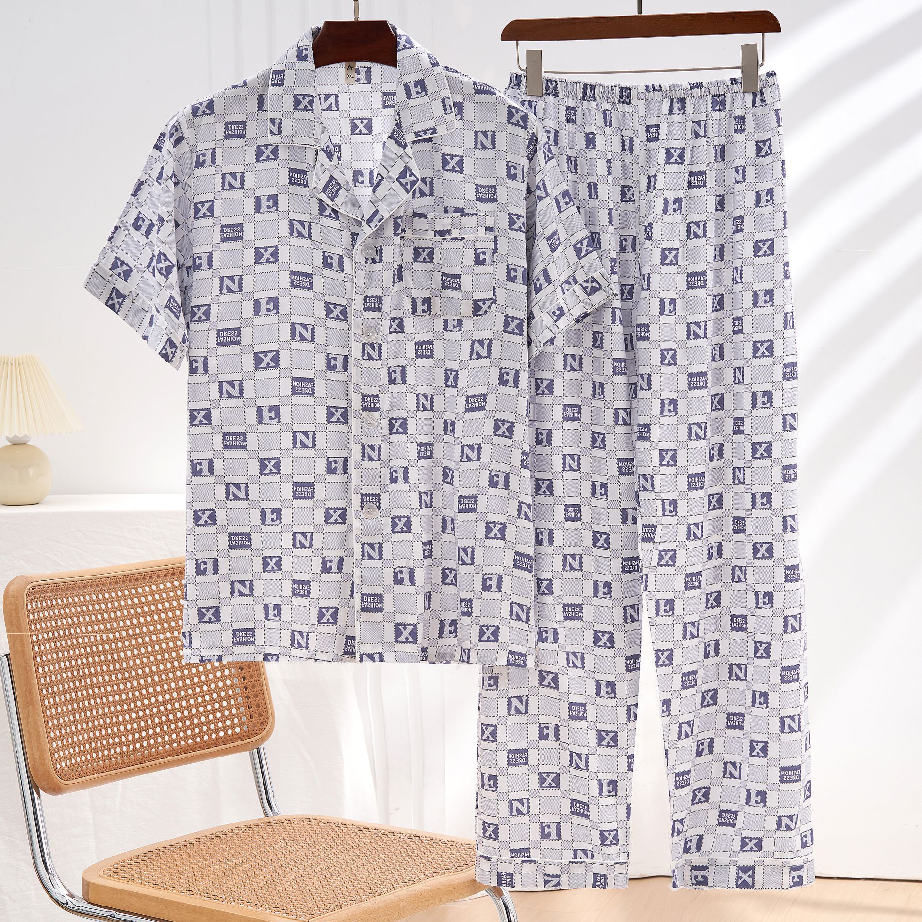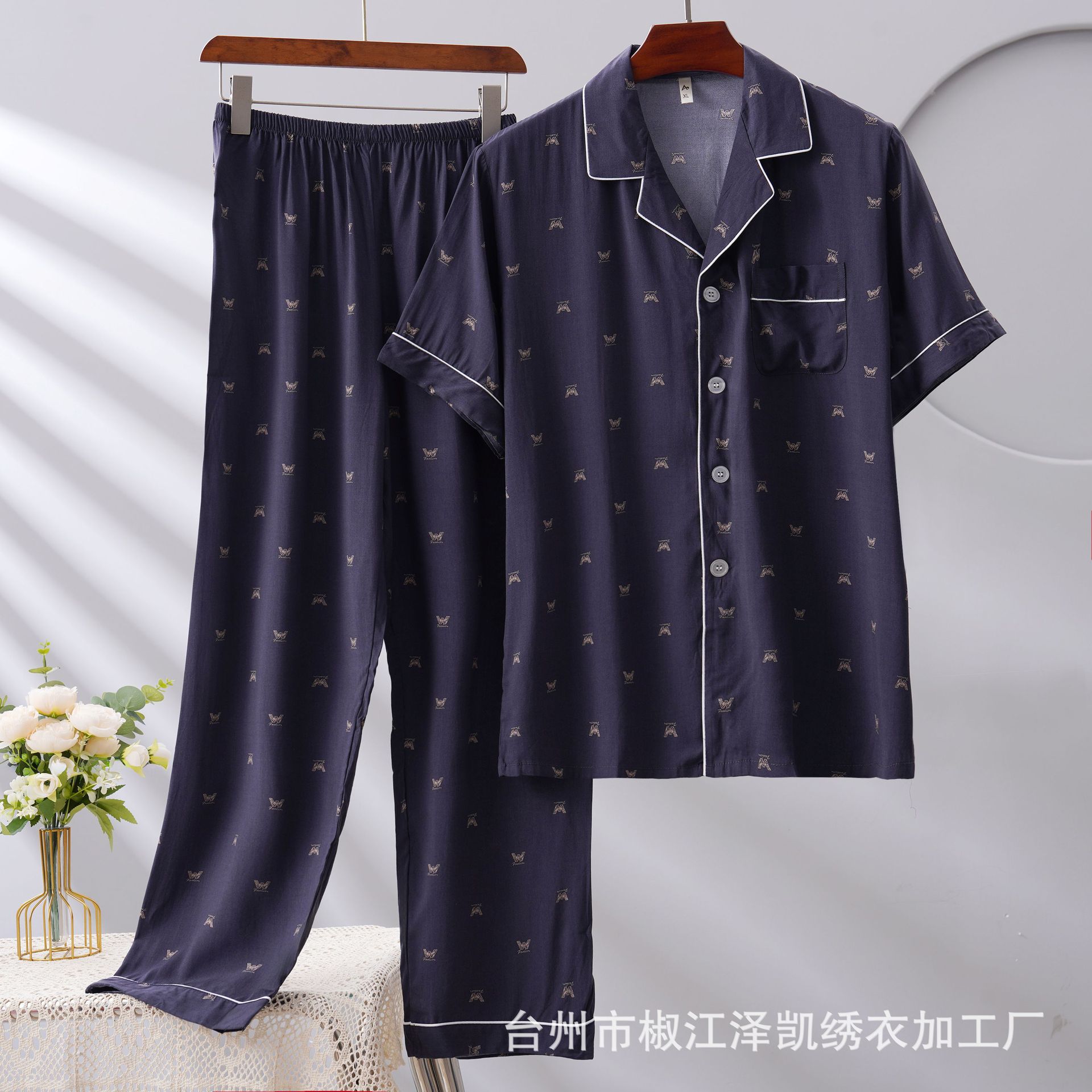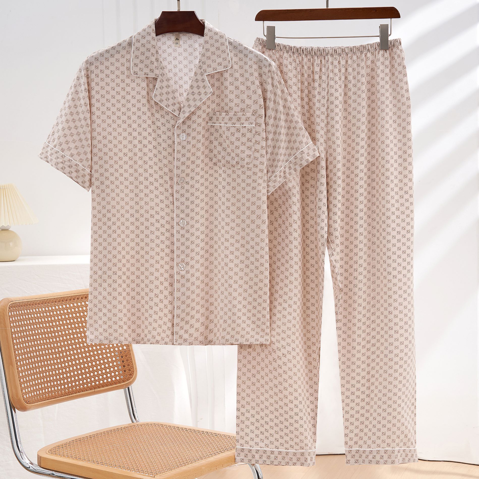 2024 새로운 남성 봄/여름 가을면 실크 반팔 카디건 파자마 얇은 느슨한 간단한 편안한 홈 웨어