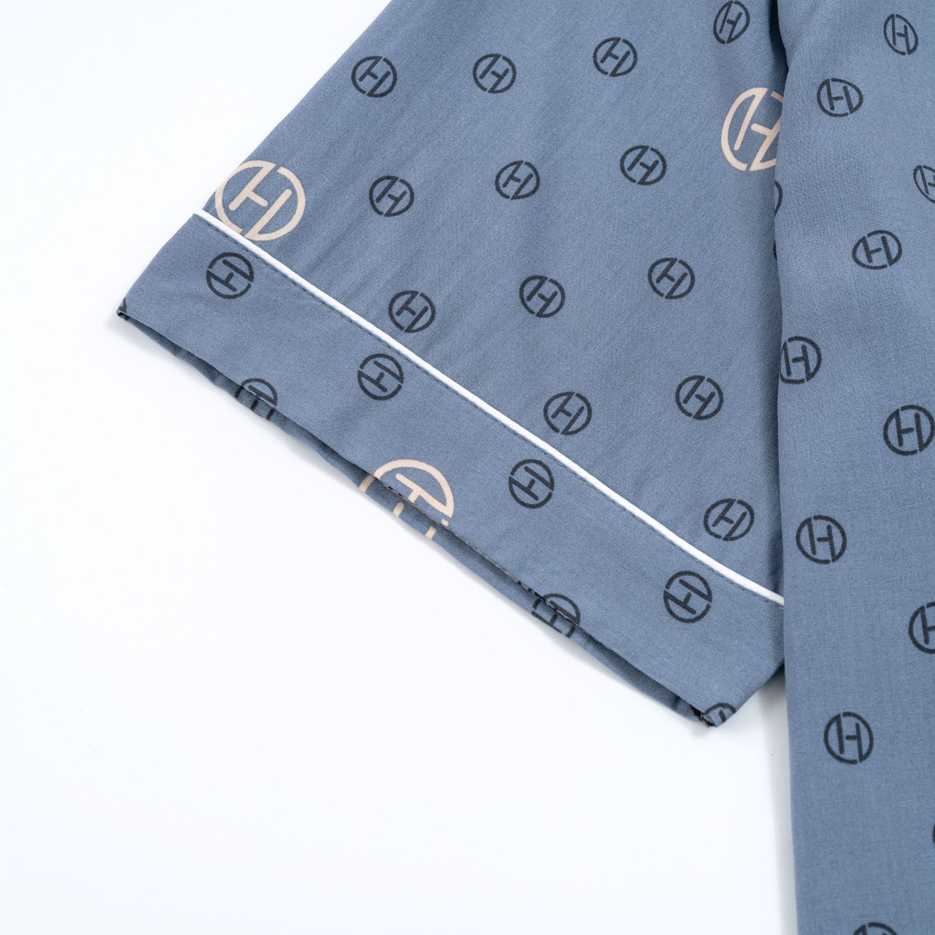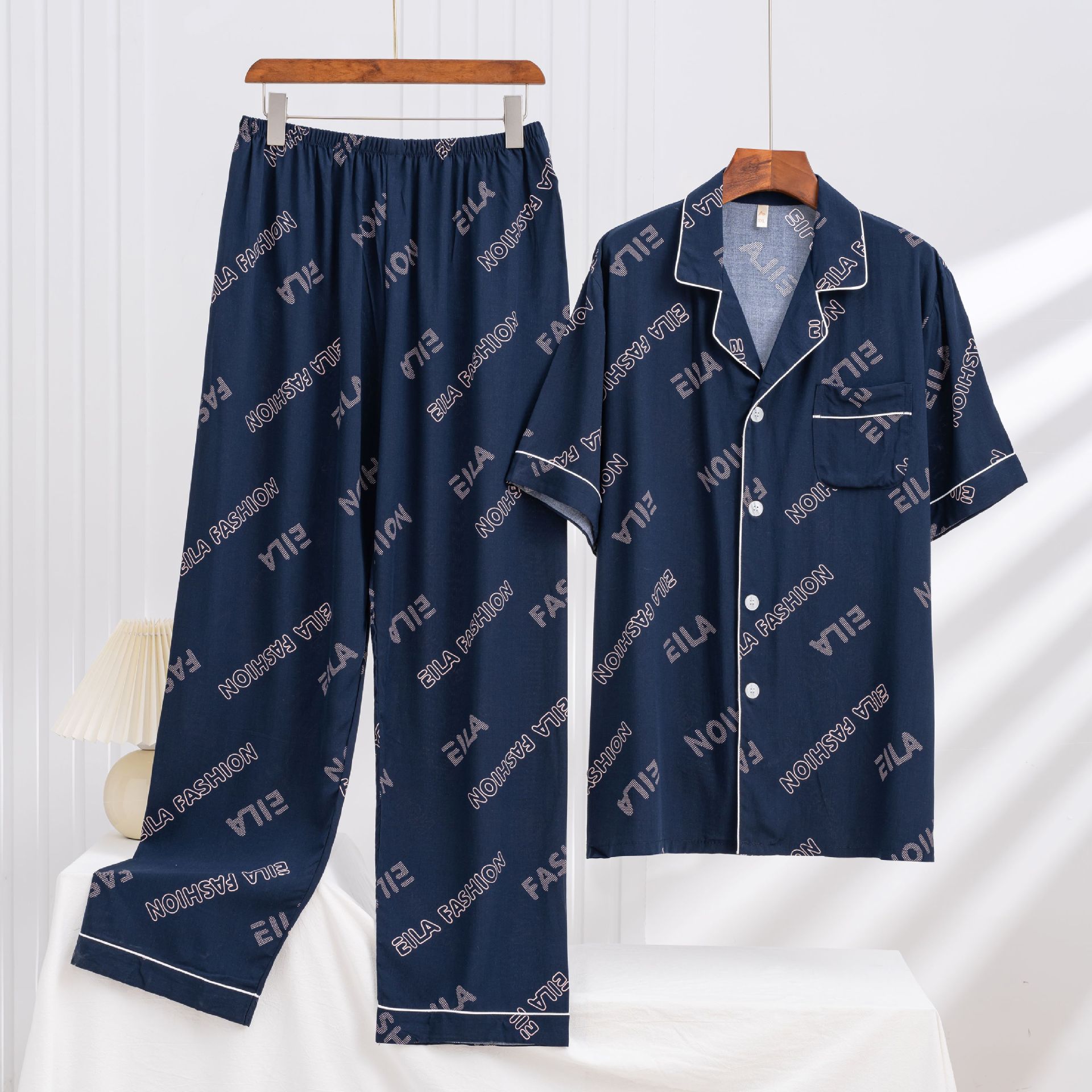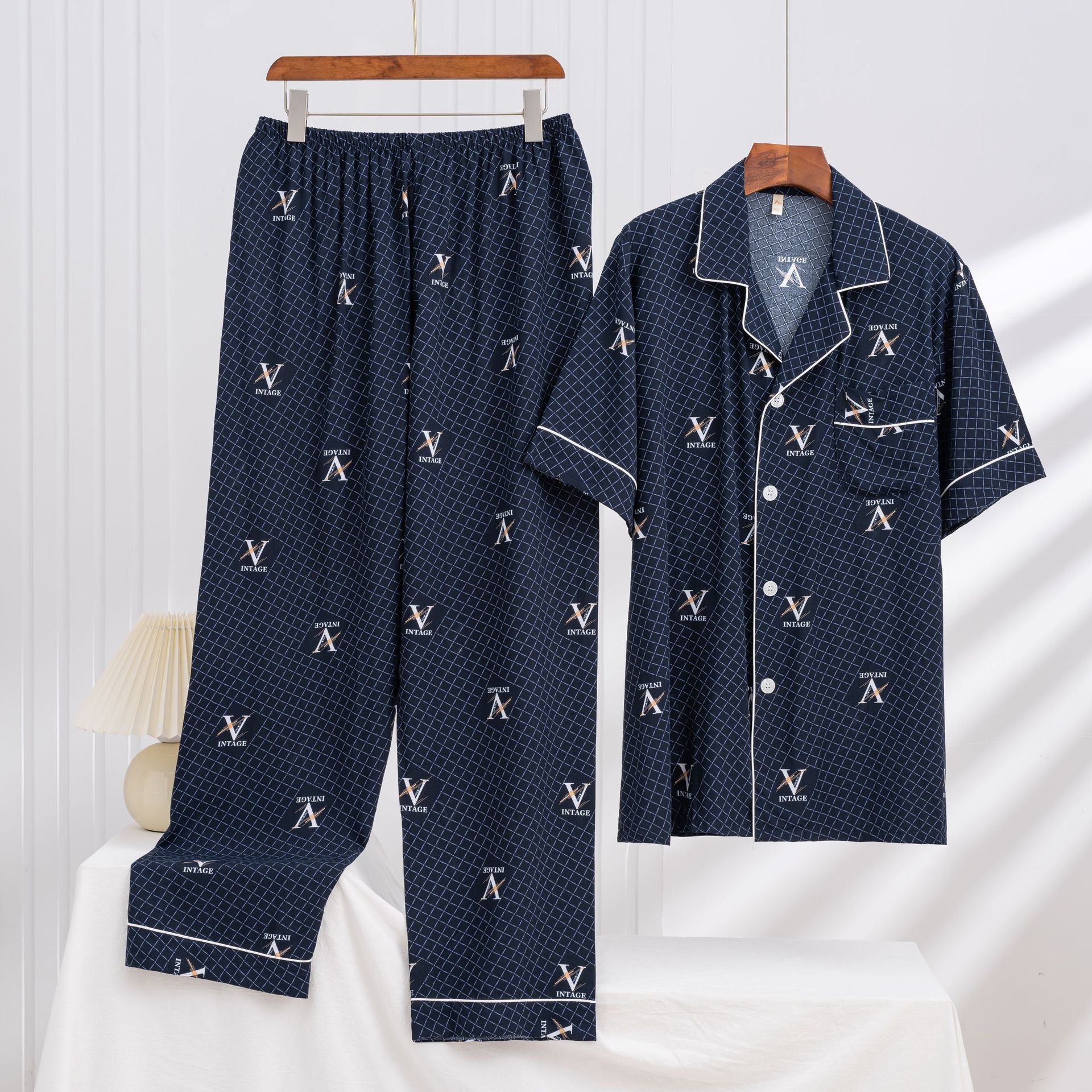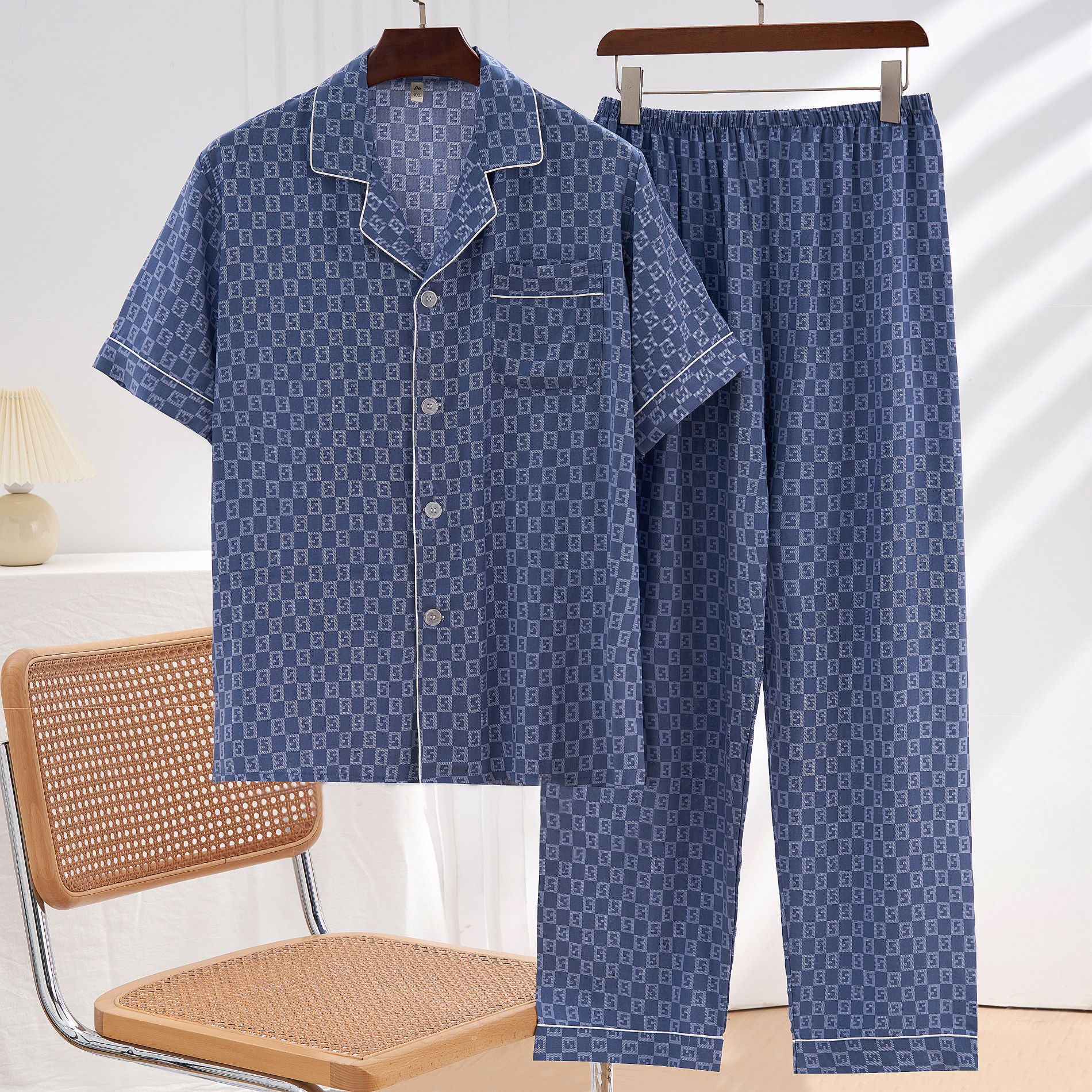 2024 새로운 남성 봄/여름 가을면 실크 반팔 카디건 파자마 얇은 느슨한 간단한 편안한 홈 웨어