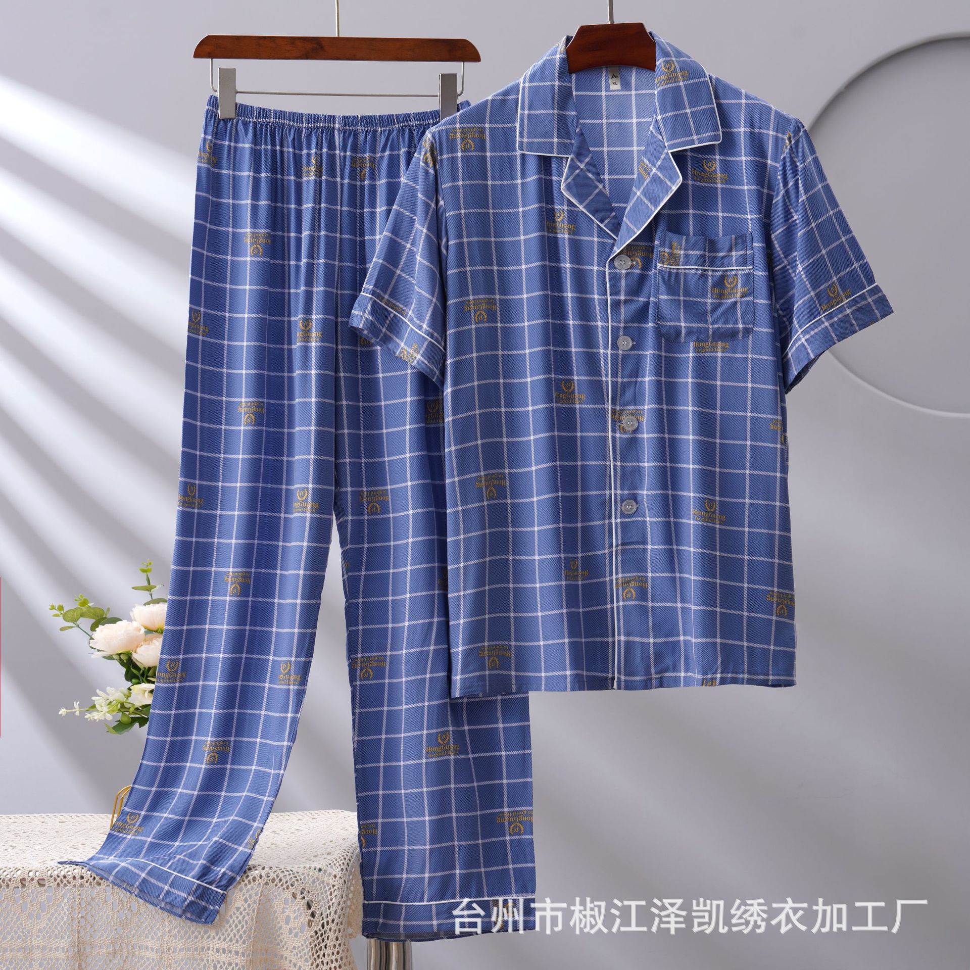 2024 새로운 남성 봄/여름 가을면 실크 반팔 카디건 파자마 얇은 느슨한 간단한 편안한 홈 웨어스토어 가기