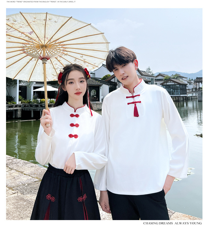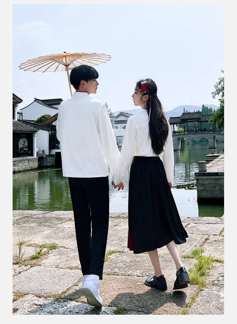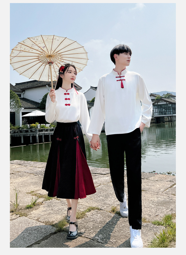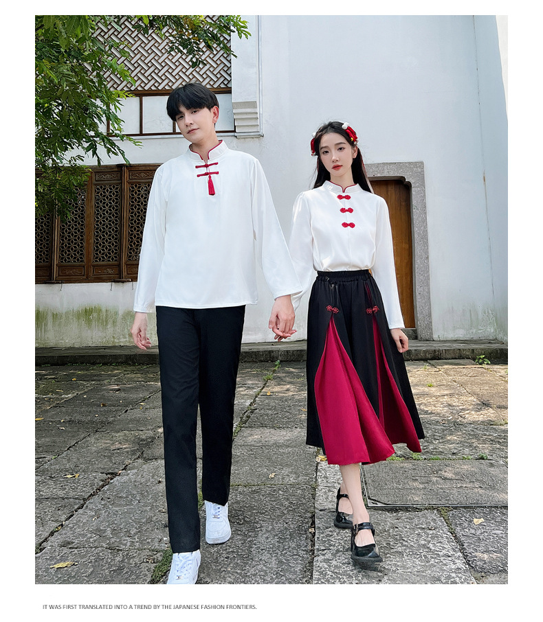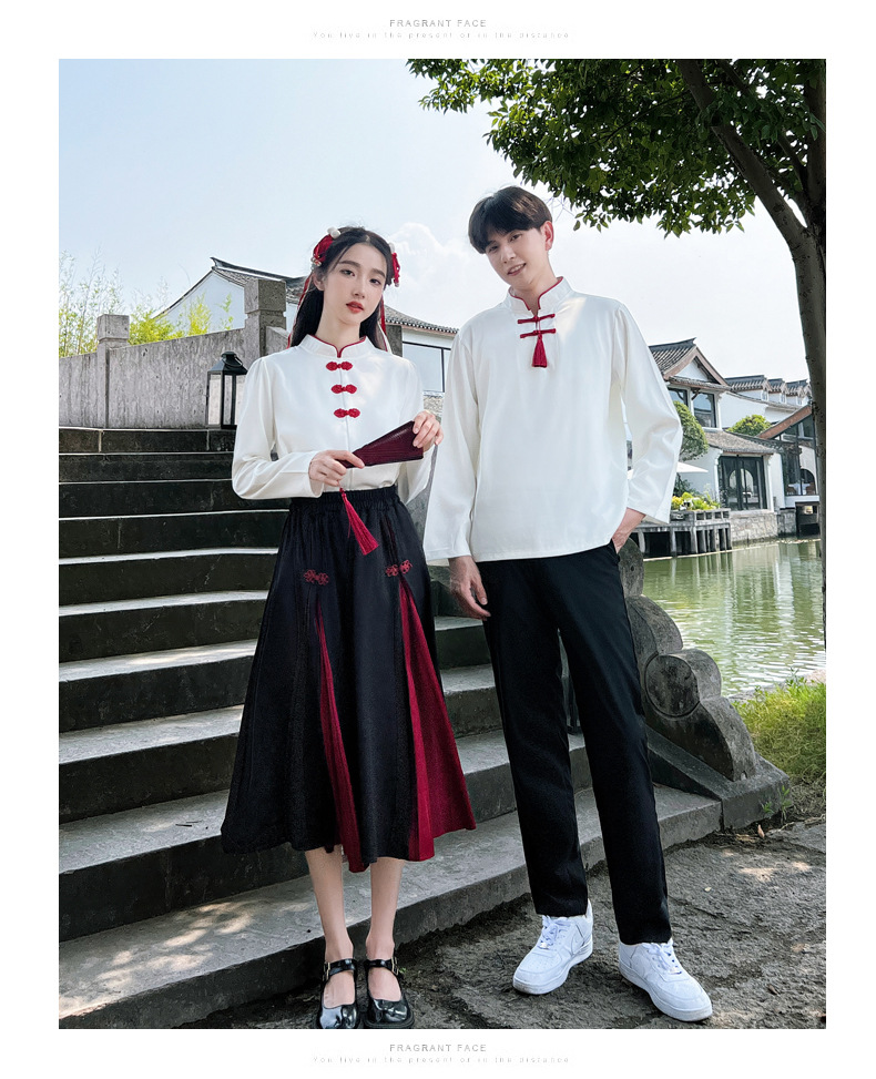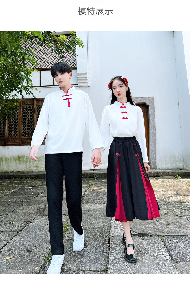내셔널 스타일 가을 커플 개선 된 버클 고대 스타일 졸업 사진 무대 유니폼 교복 학교 유니폼 스커트 스탠드 칼라 셔츠를 입습니다.스토어 가기