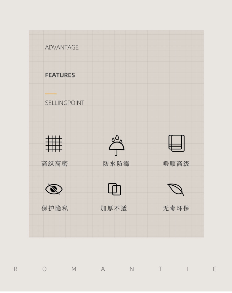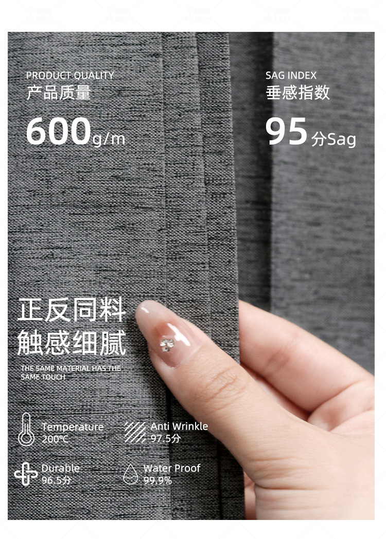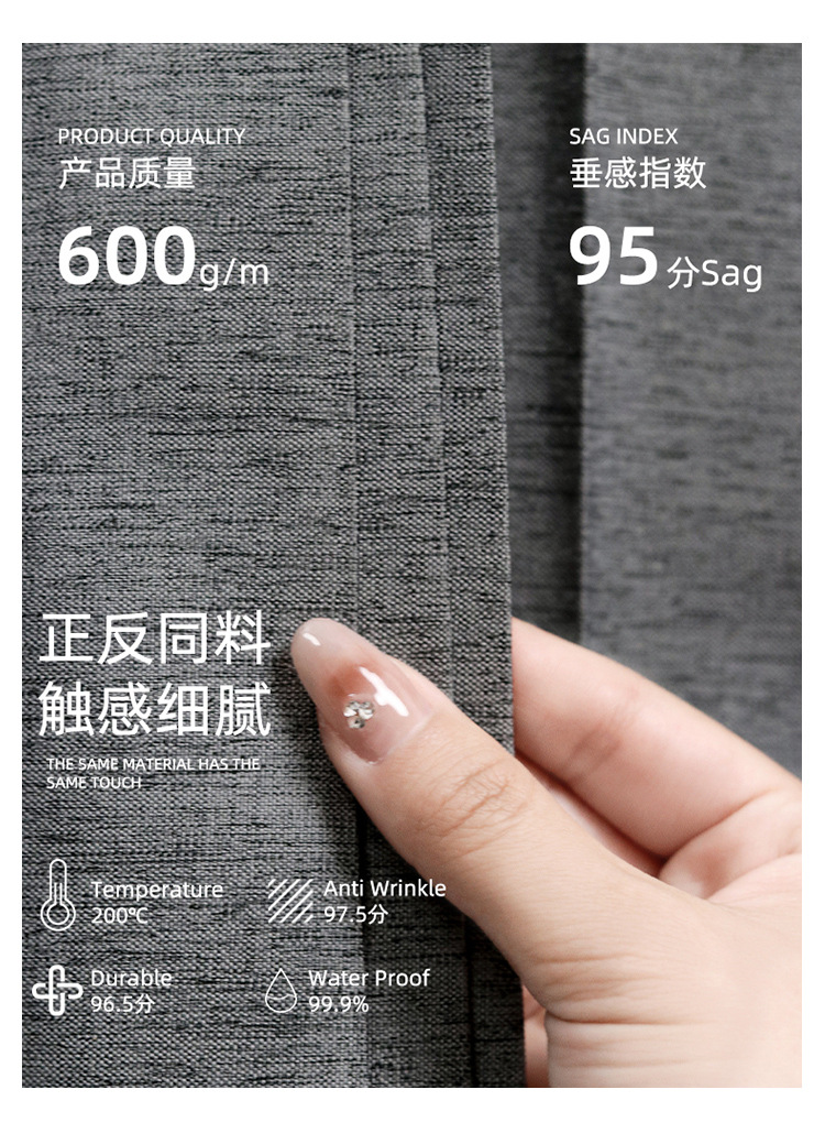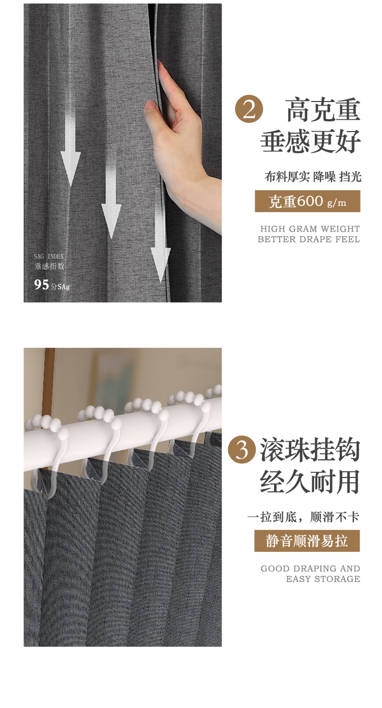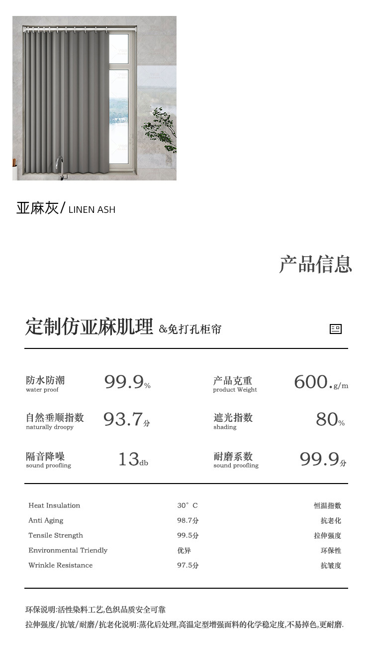 • [양면 자기 흡입 6 완전 음영 방수 및 곰팡이 방지] 린넨 그레이