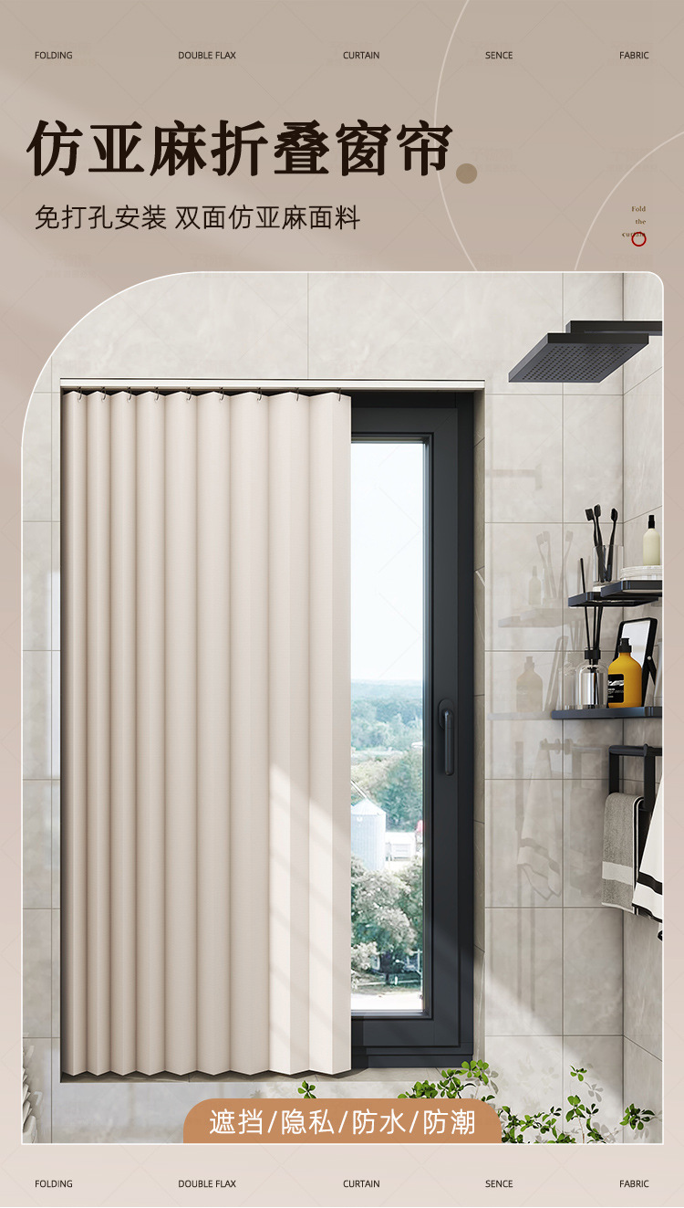 주방 욕실 커튼 롤업 접이식 보이지 않는 펀치없는 방수 안티 노출 음영 욕실 창