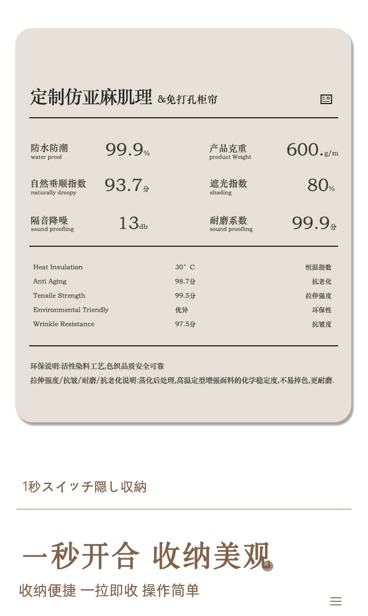 • [전체 음영 방수 및 곰팡이 방지] 귀리 색상