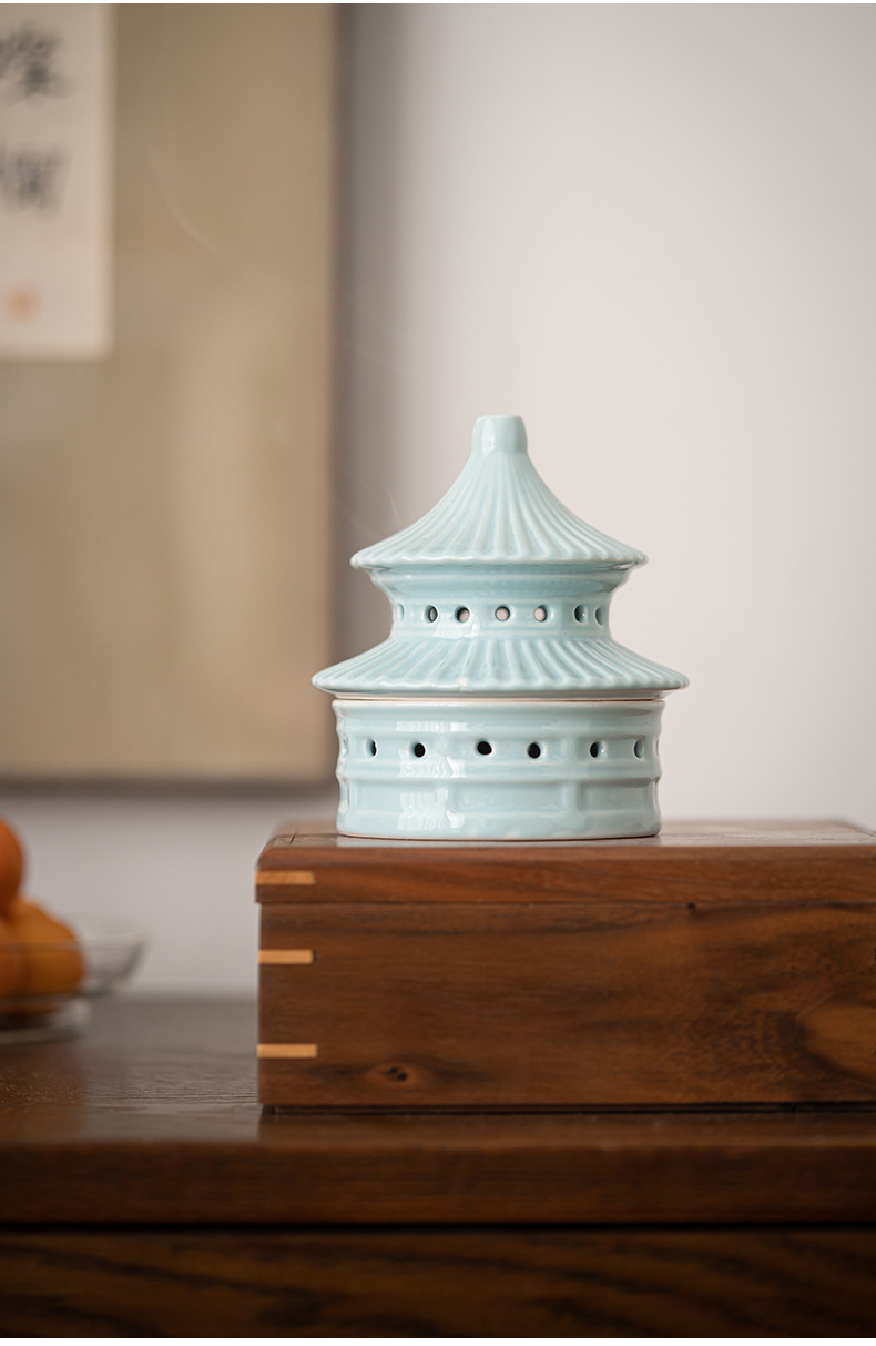 새로운 천국 향 버너 홈 실내 청자 세라믹 판 향 버너 샌달 우드 타워 향 창조적 인 중국 탑 장식