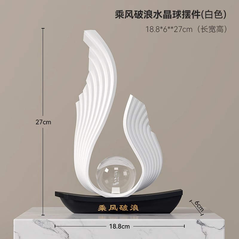 • 바람을 타고 파도를 깨고 크리스탈 볼 장식품 [흰색]
