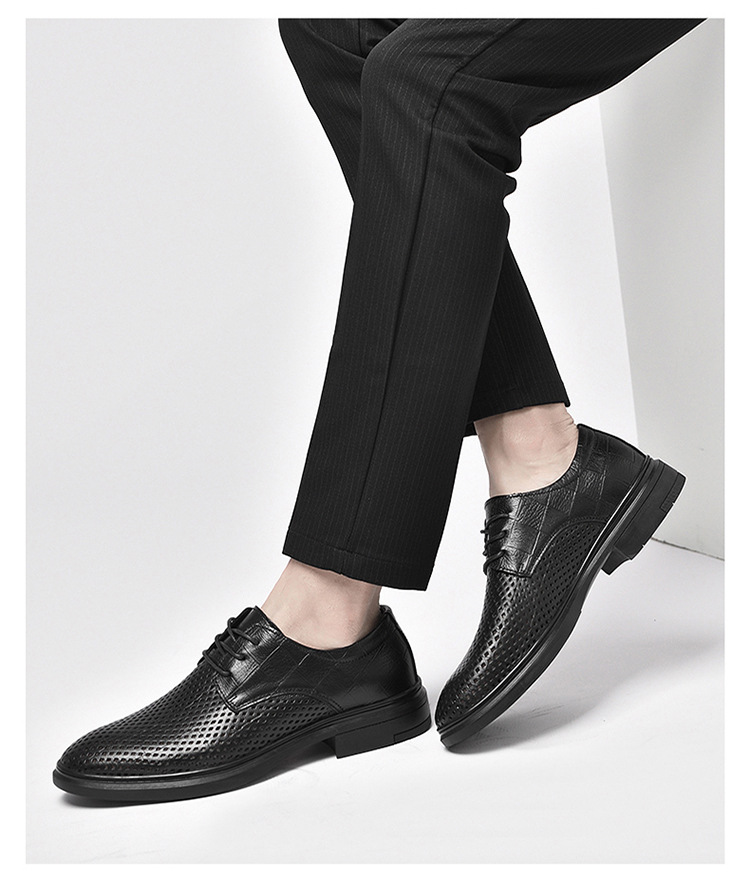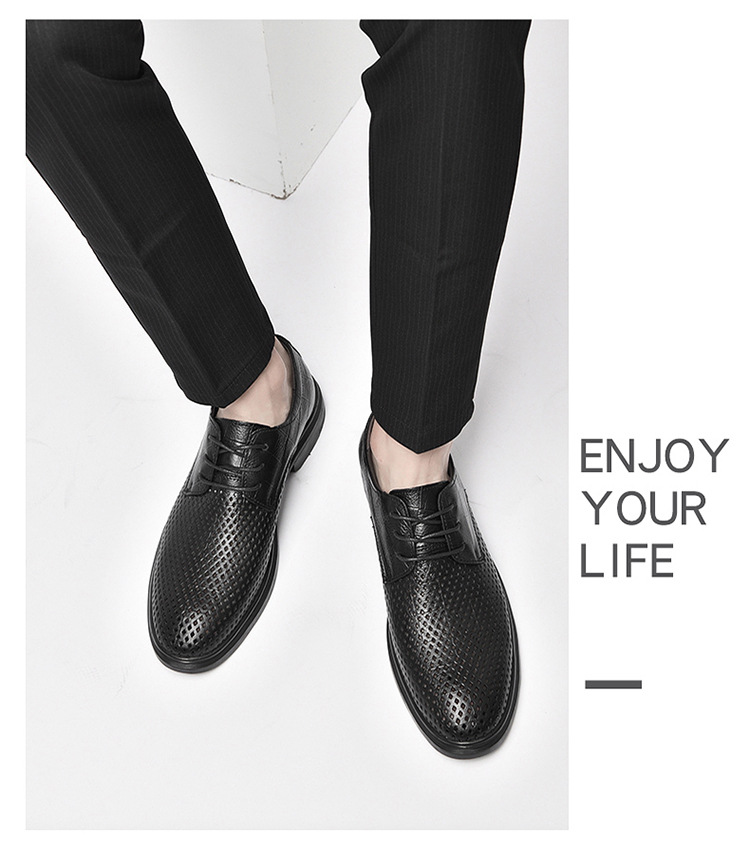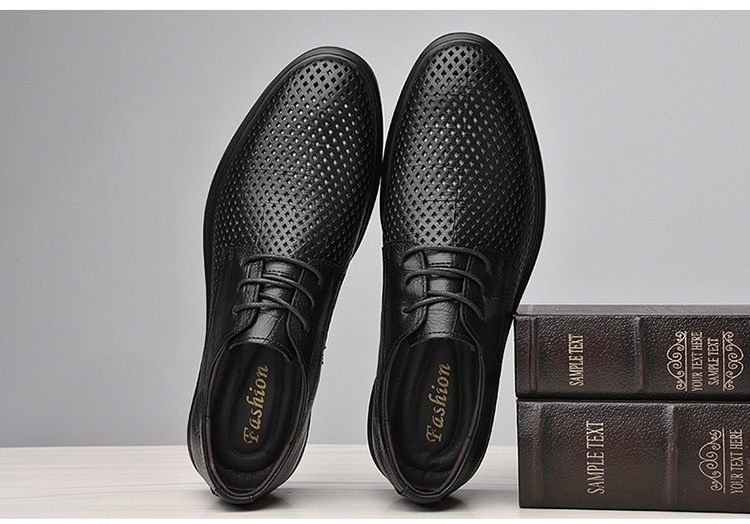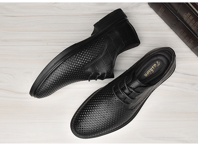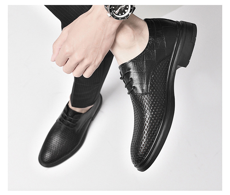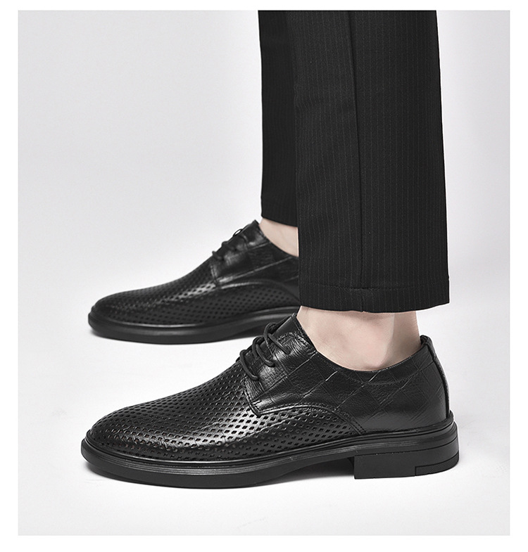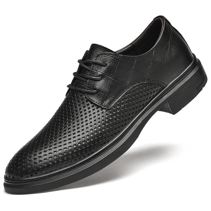 첫 번째 레이어 소 가죽 비즈니스 스타일 작업 가죽 신발 남성 캐주얼 가죽 신발 여름 중공 통기성 공식 착용 가죽 신발 남성스토어 가기