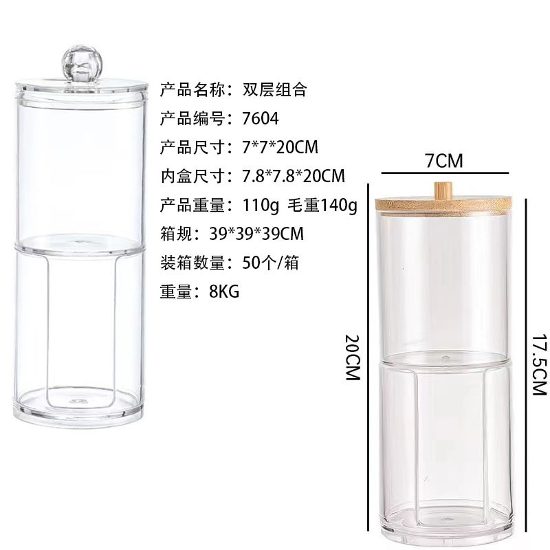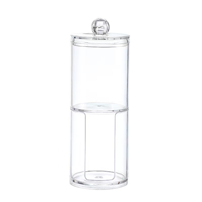2 대 1 더블 레이어 라운드 면봉 상자 메이크업 리무버 면 저장 상자 가정용 투명 데스크탑 보석 화장품 면화 보관 상자