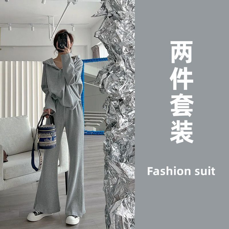 세련된 서양식 연령 감소 레저 스포츠 세트 여성 2024 봄과 가을 신입 슬리밍 탑 바지 투피스 세트스토어 가기